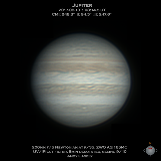 200mm Newtonian, ASI185MC, 8min derotated in WinJupos
