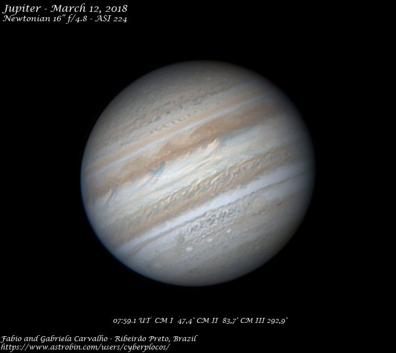 Jupiter on March 12 with variable seeing and good transparency