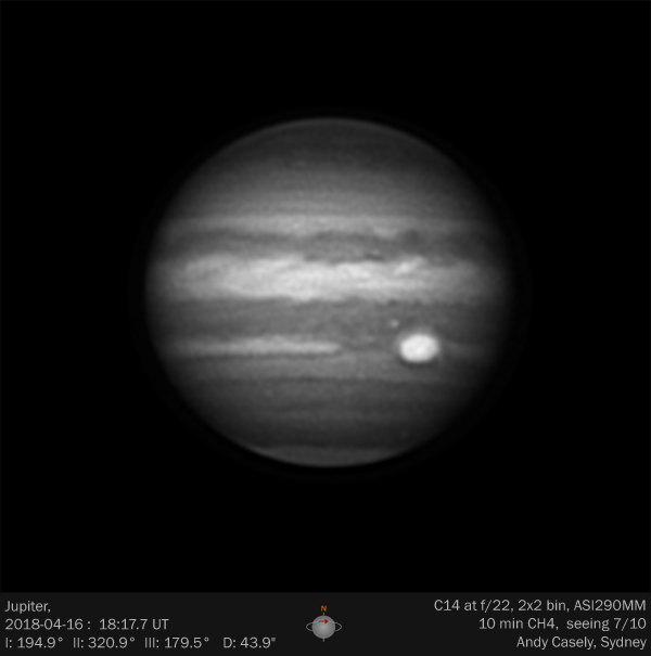 Jupiter, CH4, 10min derotated in WinJupos