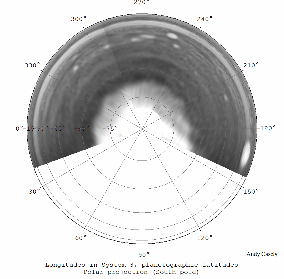 South polar map in CH4, excellent conditions, from three frames: 09:25, 10:13 & 12:00 UT