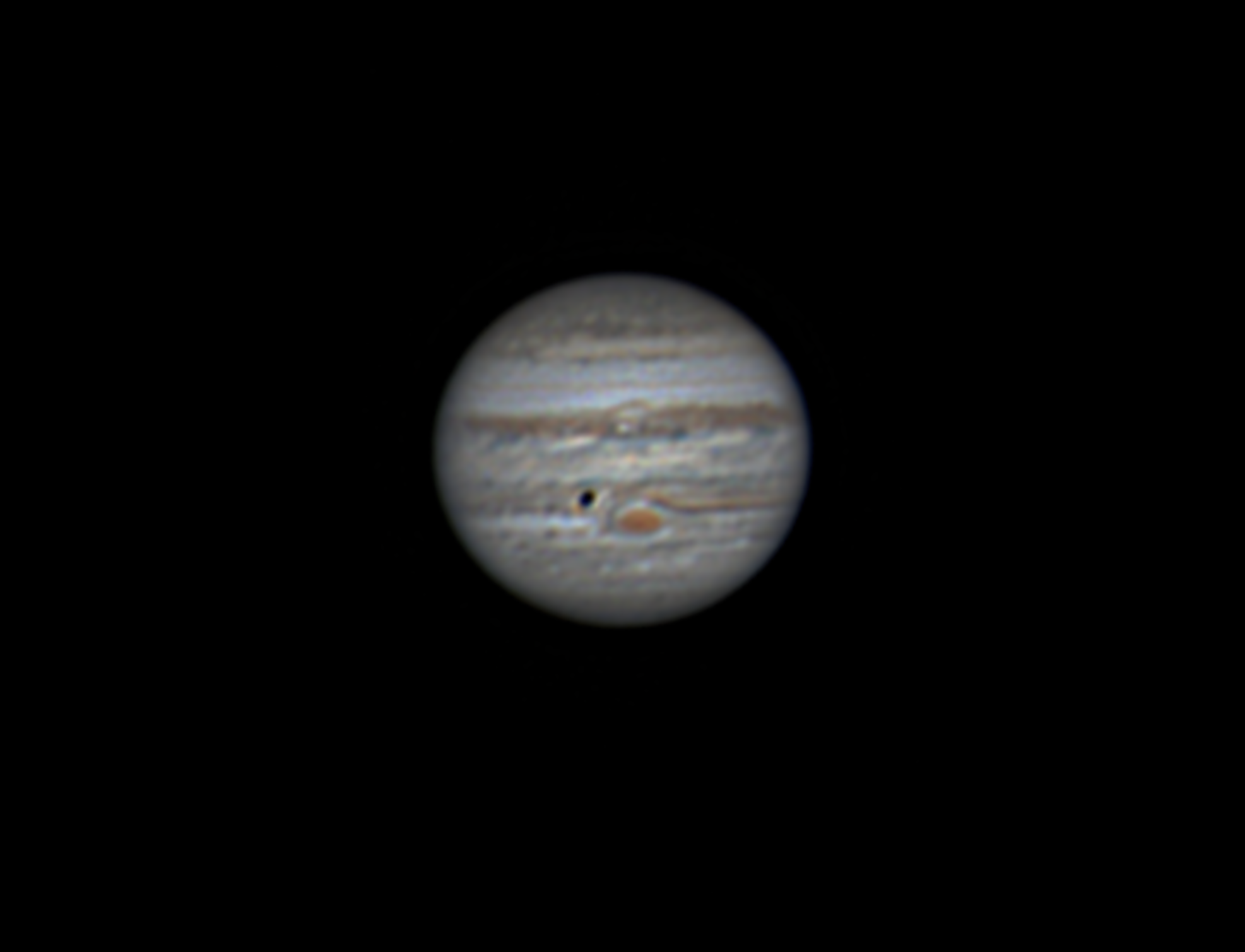 The Moon IO passes in front of Jupiter on 13th October 2022. Pretty good seeing and transparency. equipment: Orion starseeker IV 130 telescope ZWO ASI 224mc Color CMOS camera 3X Barlow Lens