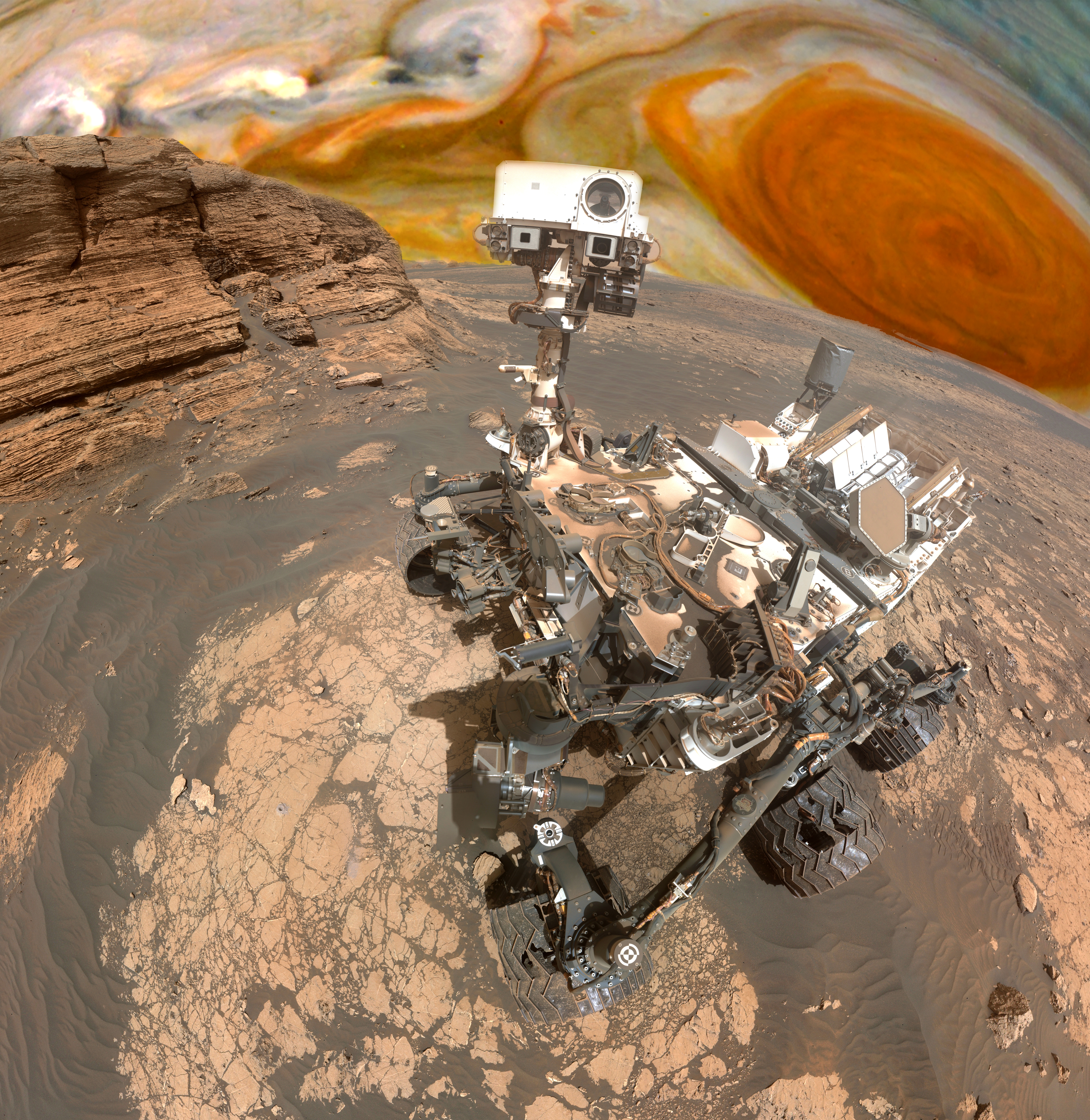 Mars and curiosity rover : Stitched together around 55 images from Mars Hand Lens Imager (MAHLI) on Sol 3070 (26th March 2021)