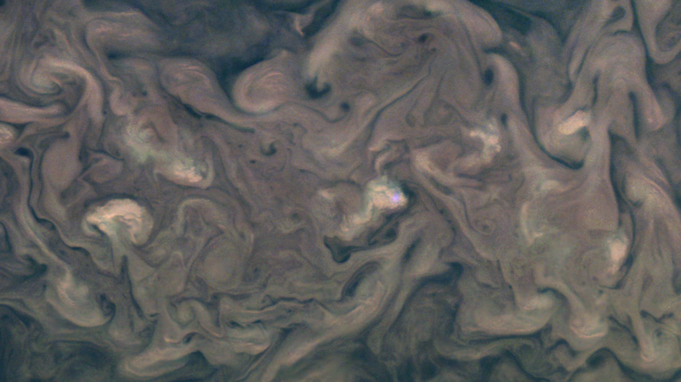 PJ34_50 Crop, Exaggerated Color/Contrast (Blue flash in clouds top?)