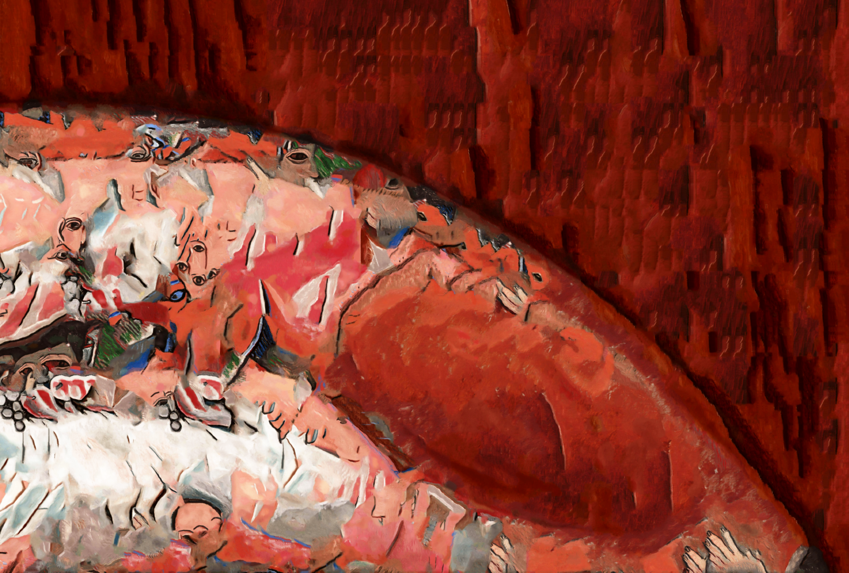 An artistic version of Great Red Spot. Rendered using GIMP G'MIC-Qt. Stylized with the painting 'Les Demoiselles d'Avignon' by Pablo Picasso.