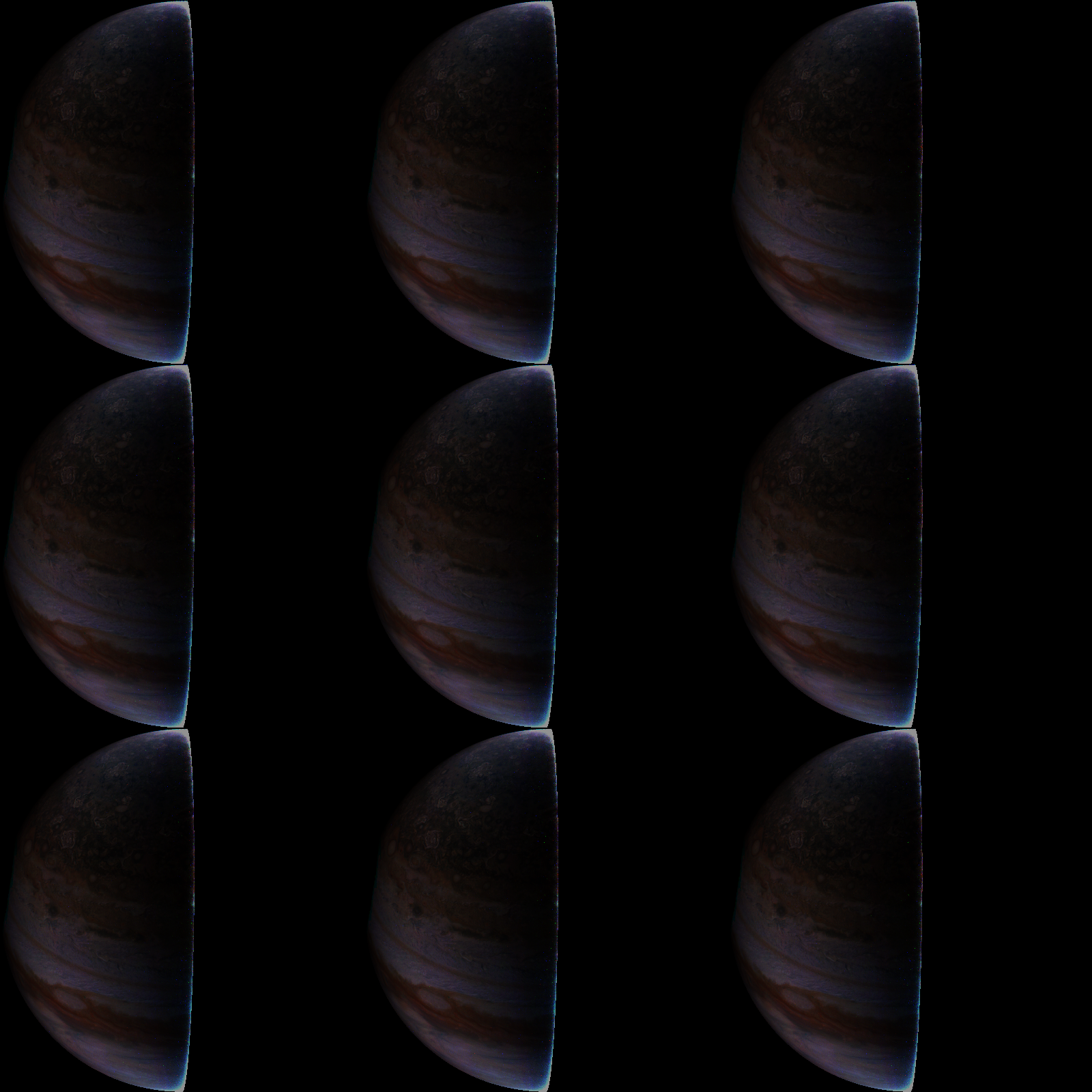 A special note about the Earth Flyby mission phase images: these were acquired in 2013 when Juno flew past Earth. Examples of processed images are shown; most contributions are from amateurs.