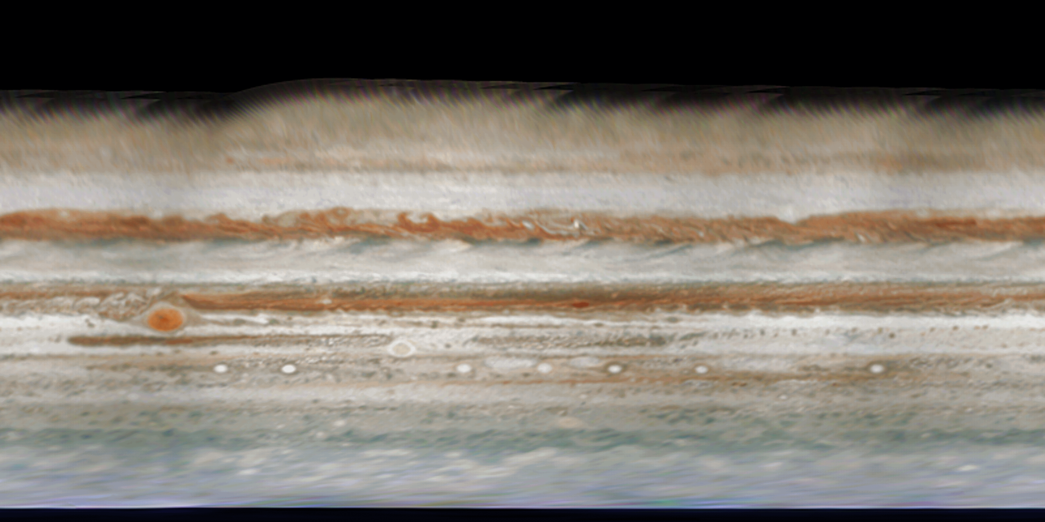 PJ59 approach images are projected into cylindrical maps. Since those images cover about 20 hours, they can be merged into two global maps separated by about 10 hours.