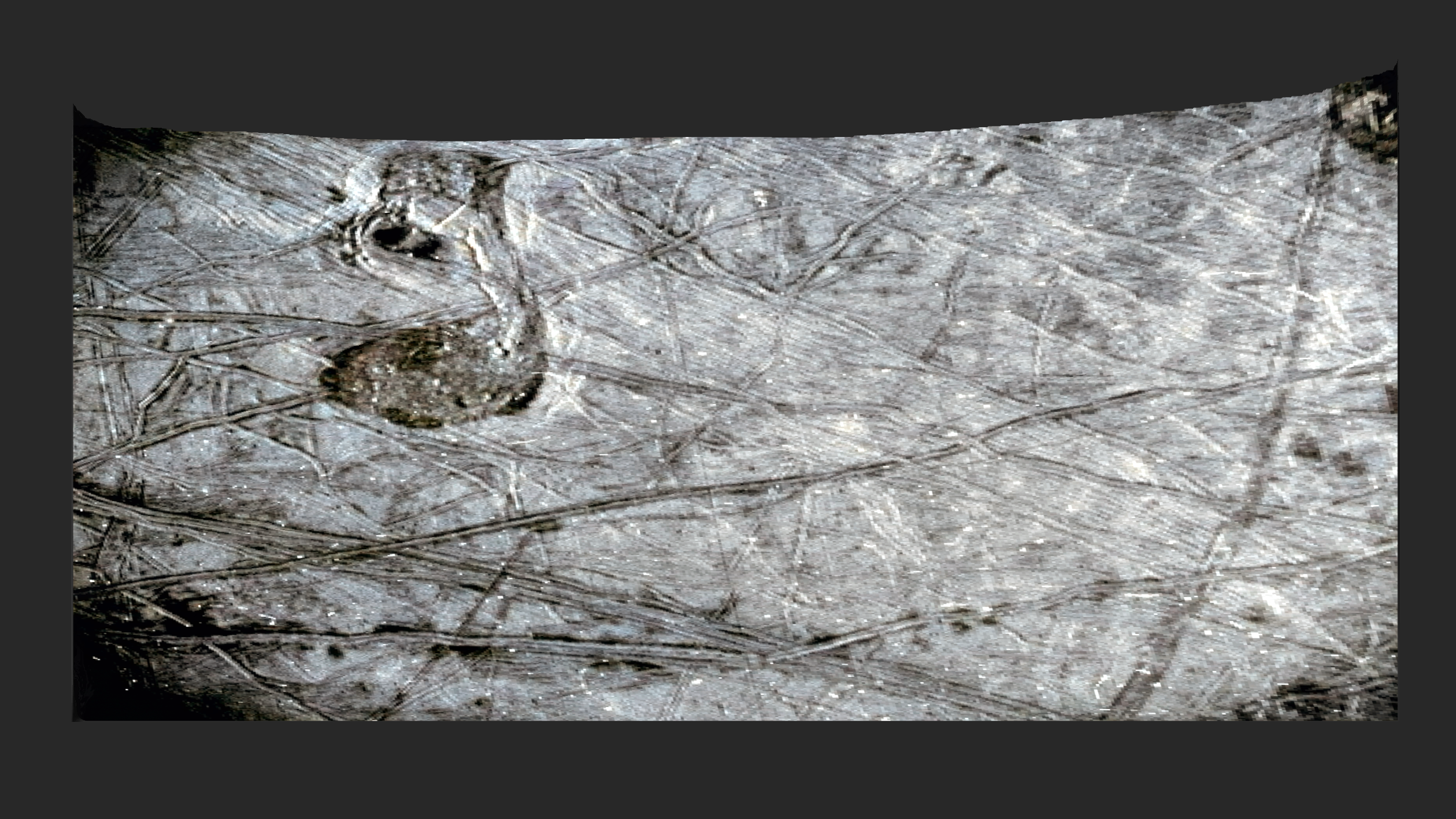 https://photojournal.jpl.nasa.gov/catalog/PIA26332 / Process on an image of Europa taken by Juno SRU (see link) / False color and 3D based on grayscale