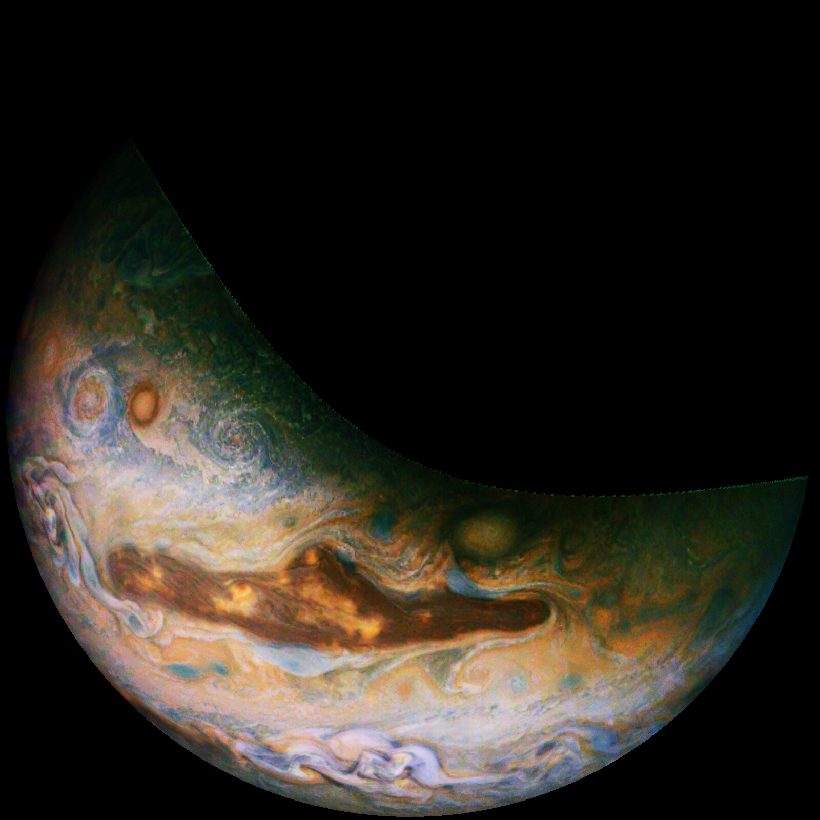 We invite you to download raw JunoCam images posted here and do your own image processing on them. Be creative! Anything from cropping to color enhancing to collaging is fair game. Then upload your creations here.