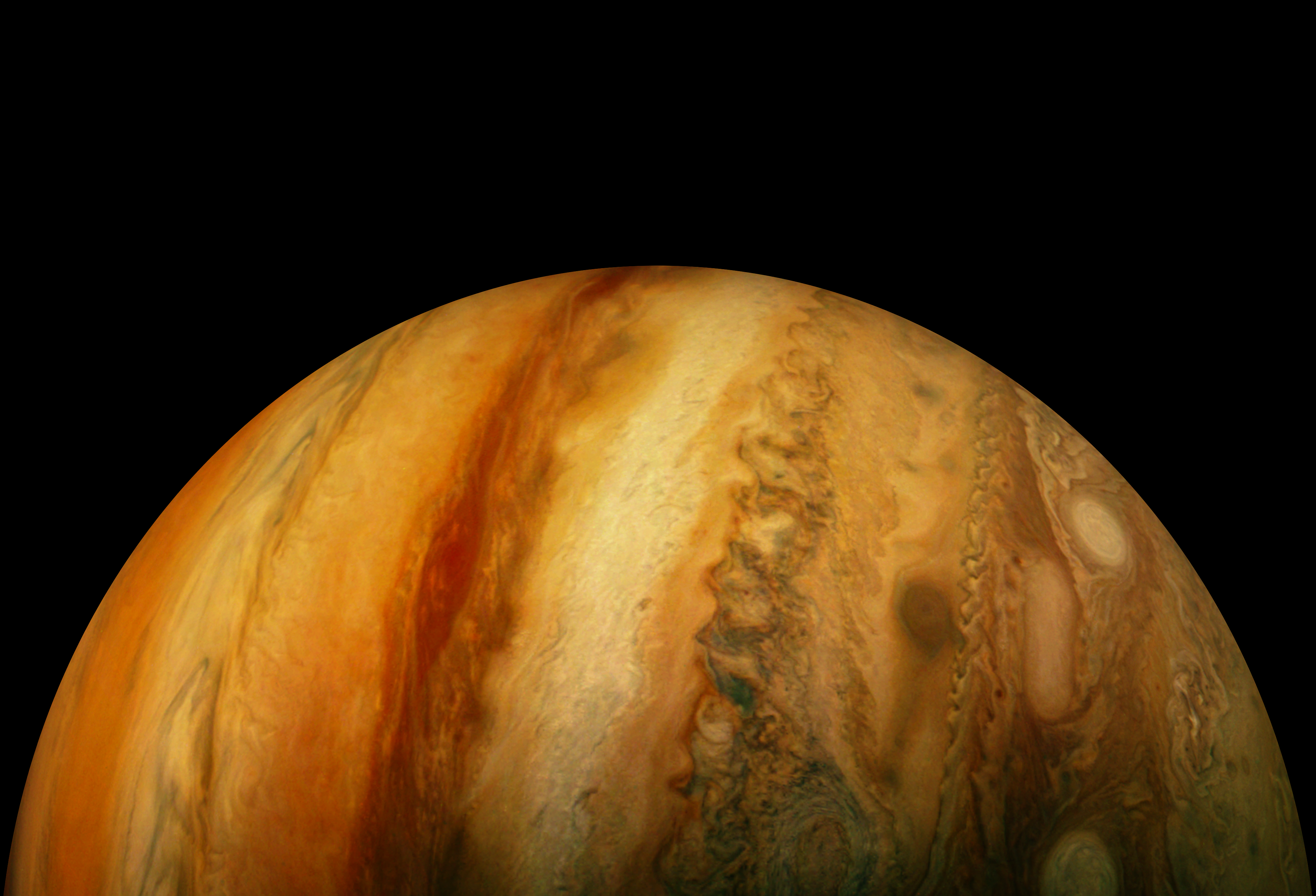 Southern Jets of Jupiter Enhanced - PJ35-69. Enlarged and enhanced.