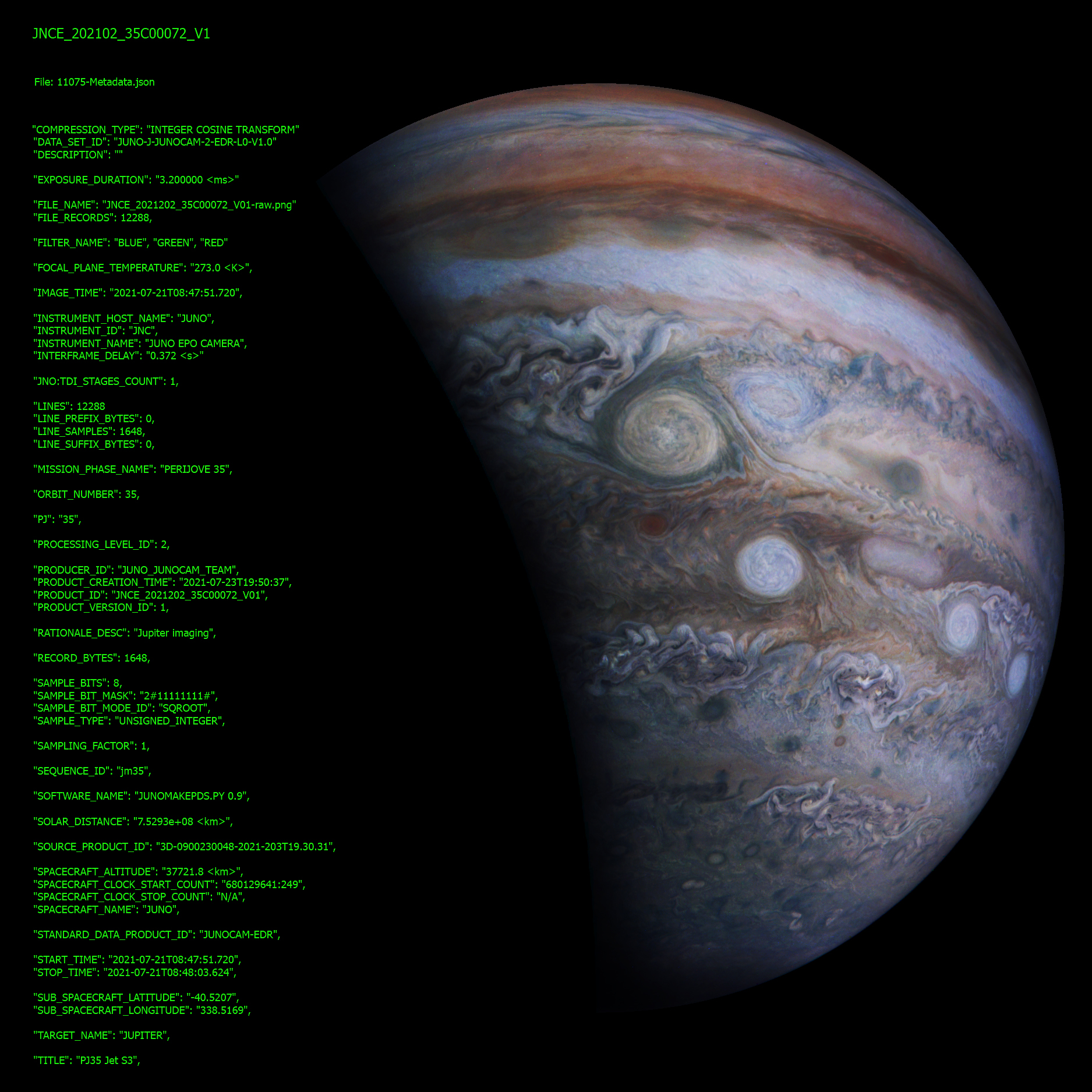 The JunoCam images are identified by a small spacecraft icon. You will see both raw and processed versions of the images as they become available. The JunoCam movie posts have too many images to post individually, so we are making them available for download in batches as zip files.