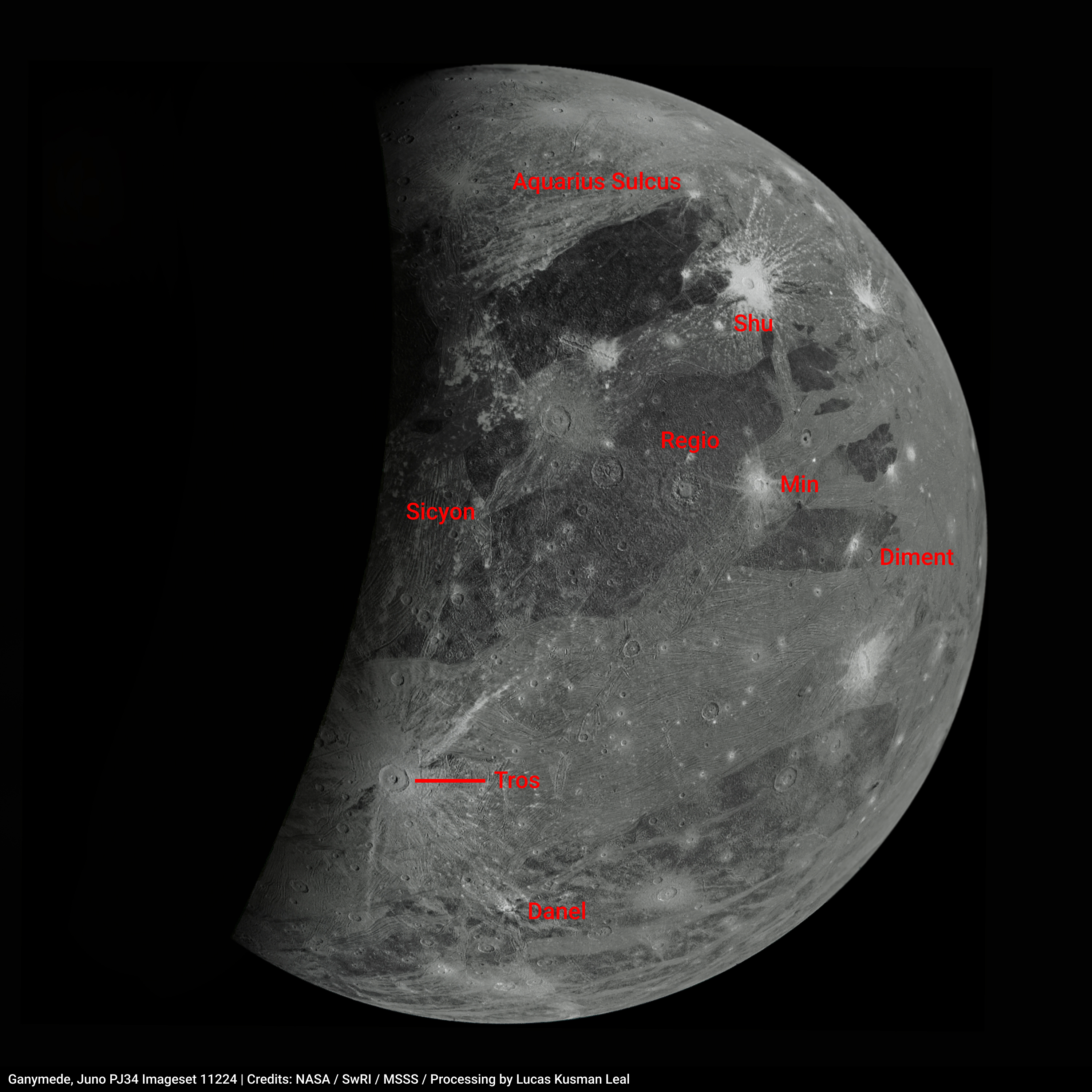 In this image, we have some craters and main locations names of Ganymede terrain.