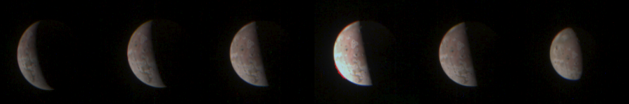This is a quick draft of the PJ47 JunoCam images of Io. Colors are arbitrarily white-balanced. Camera artefacts have not been removed. Consider only those features real that are visible in at least two images.