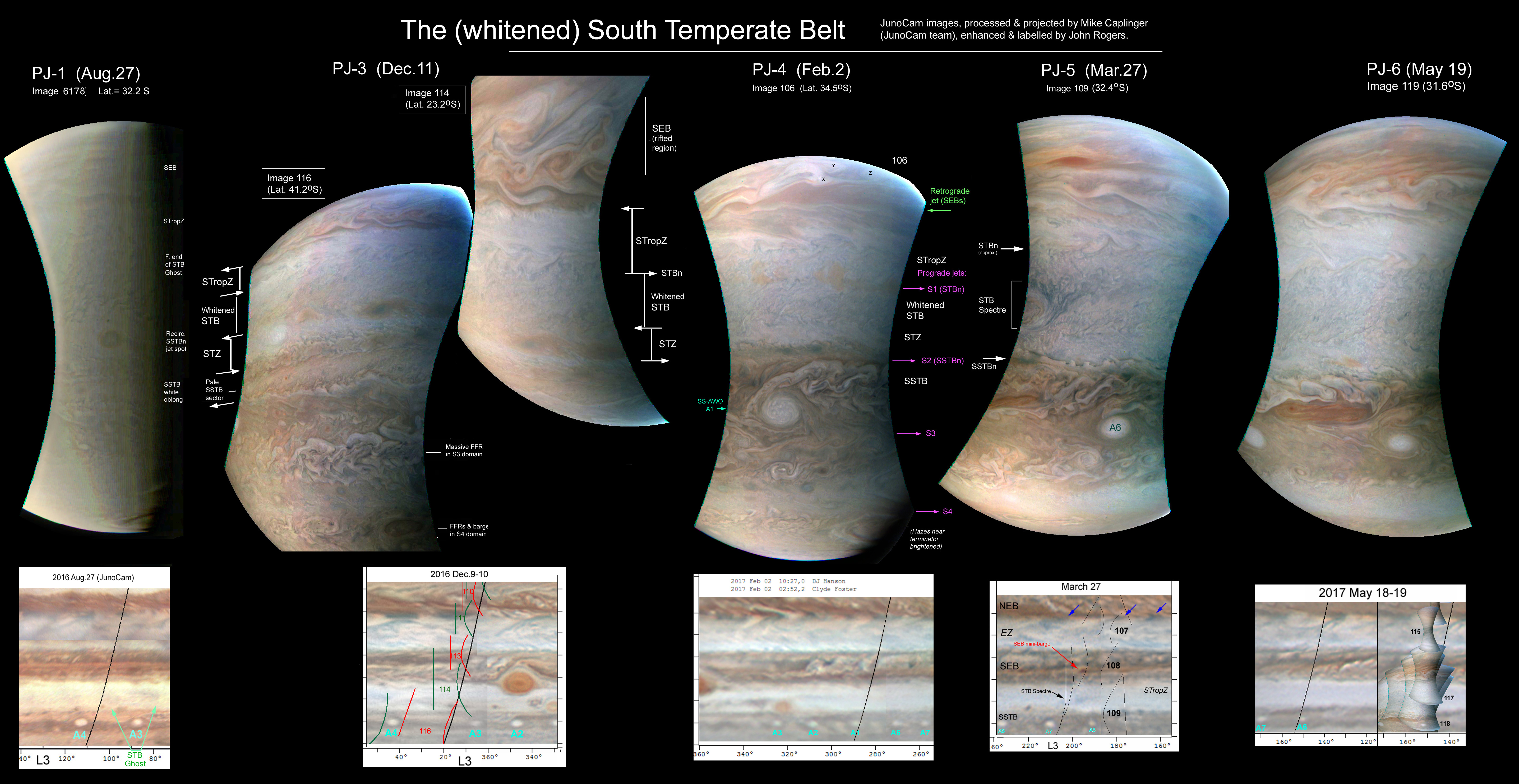 South Temperate Belt (whitened): Comparison of views from all orbits