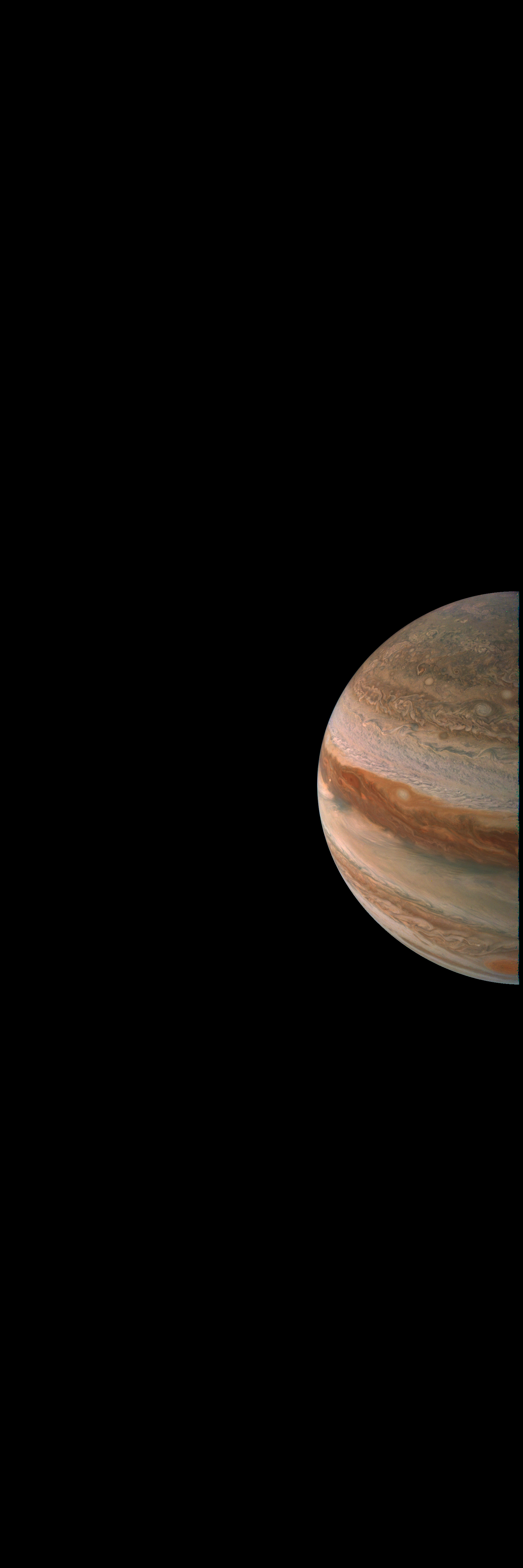 Resolution is 30 pixels per degrees in an equidistant cylindrical system centered to the camera at image stop time, with an axis parallel to Juno's spin axis. The rendered field of view is 60x180 degrees.