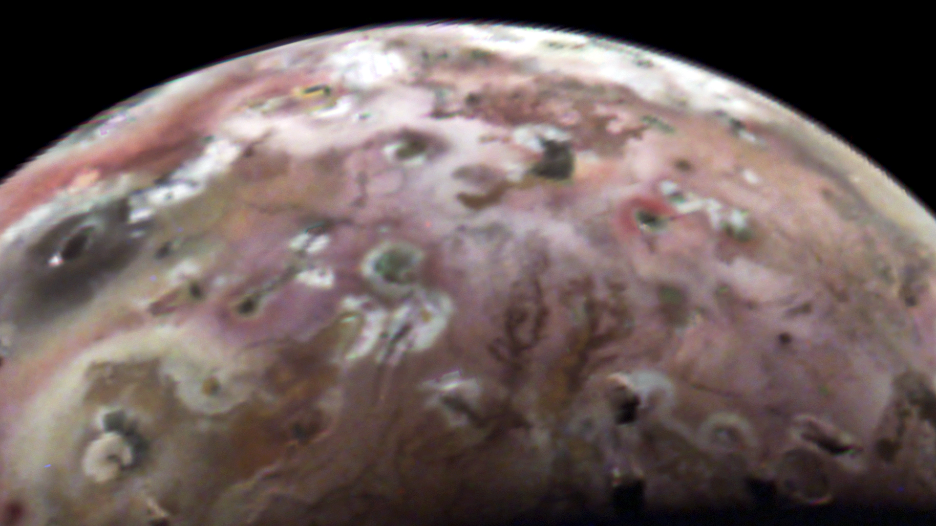 Junocam pixels are 12 bits deep from the camera but are converted to 8 bits inside the instrument using a lossless "companding" table, a process similar to gamma correction, to reduce their size. All Junocam products on the missionjuno website are in this 8-bit form as received on Earth. Scientific users interested in radiometric analysis should use the "RDR" data products archived with the Planetary Data System, which have been converted back to a linear 12-bit scale.