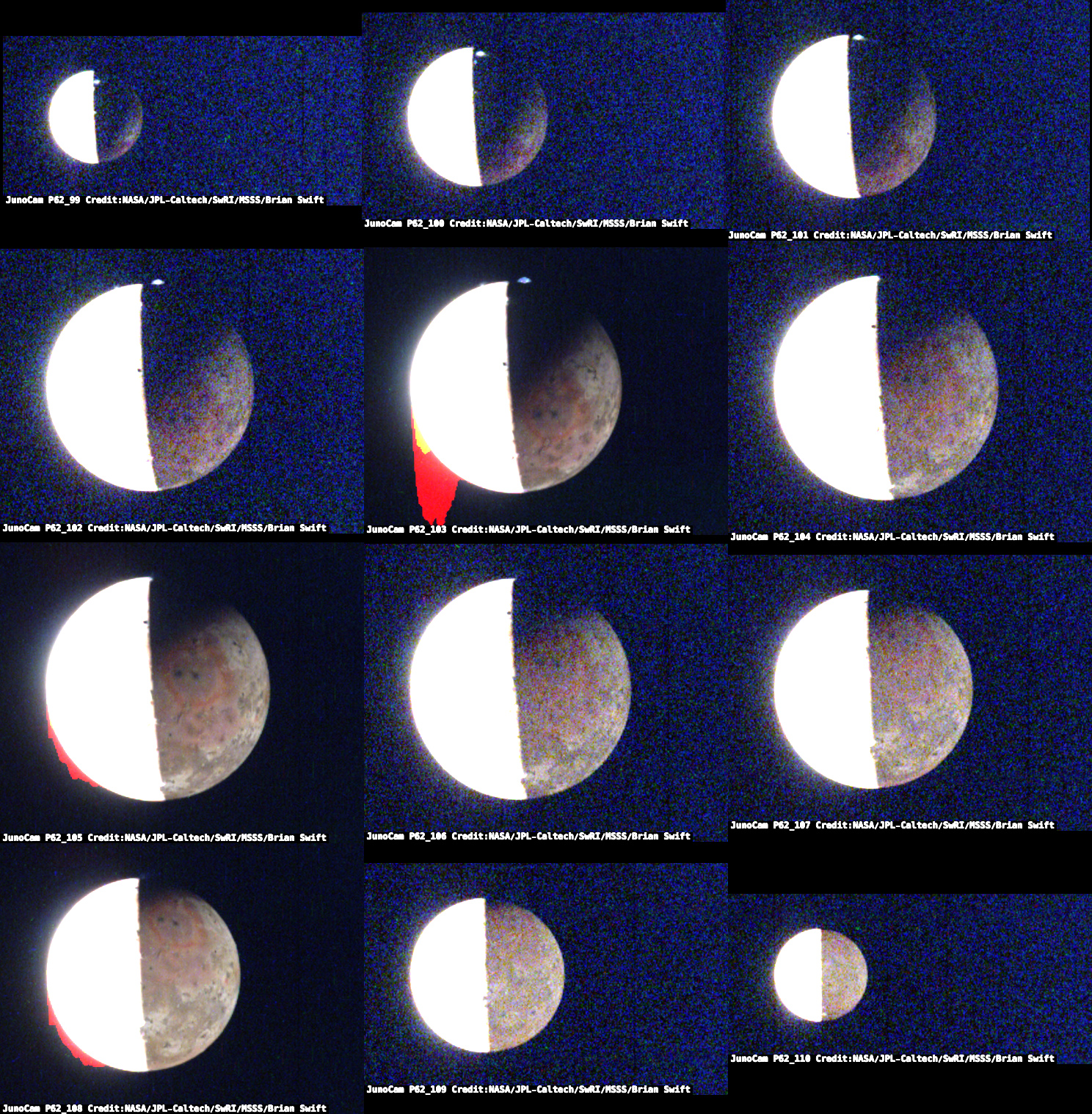 PJ62 Io Images - Extra Bright to show night side illuminated by Jupiter-shine