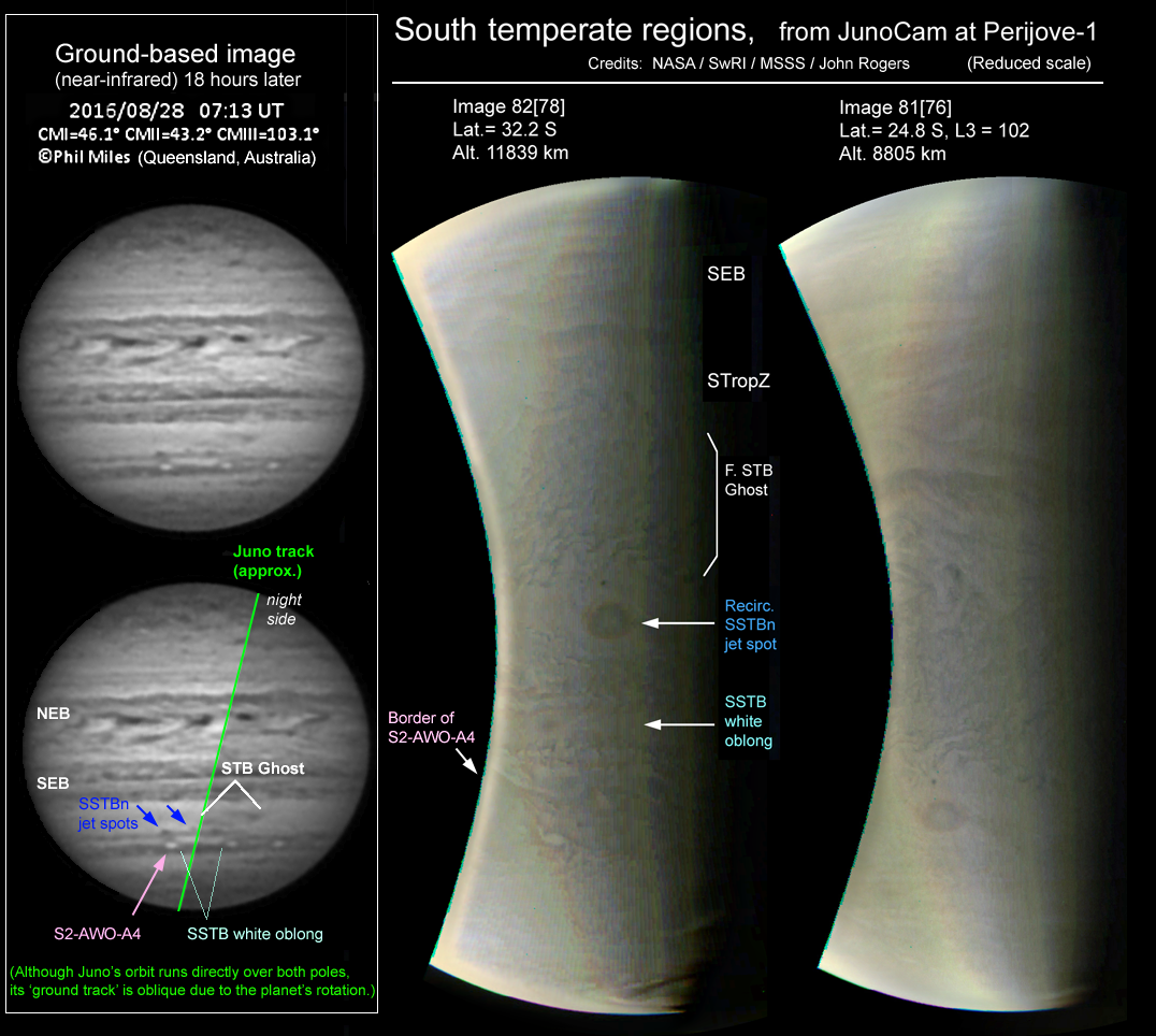 The accompanying ground-based image by Phil Miles shows the same features 18 hours later.