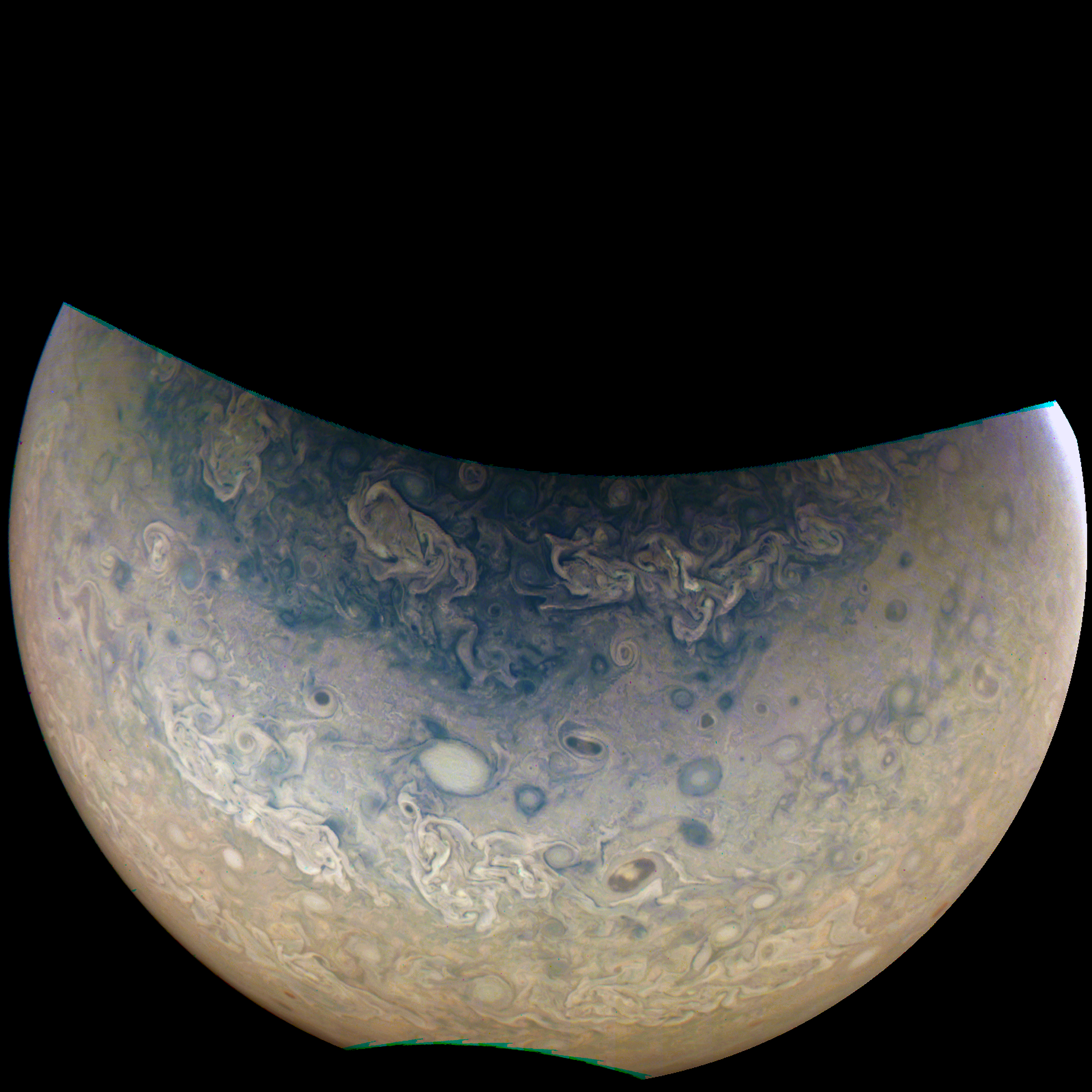 I emphasized the filaments of Jovian's clouds in thi last Juno flyby.