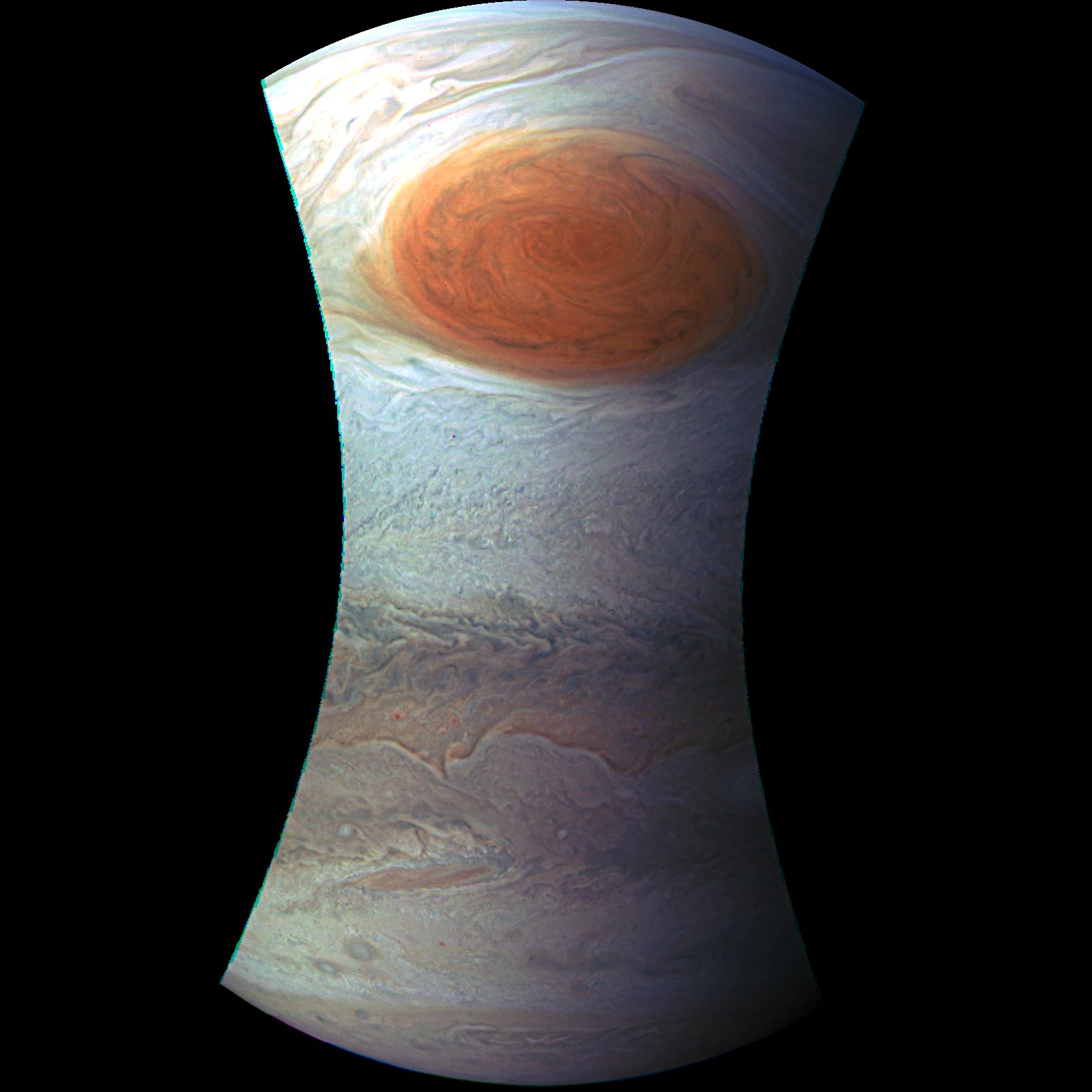 My first attempt at processing JUNO data from the GRS fly over. Used Gimp 2.9 (pre-release beta) to combine and process colors.