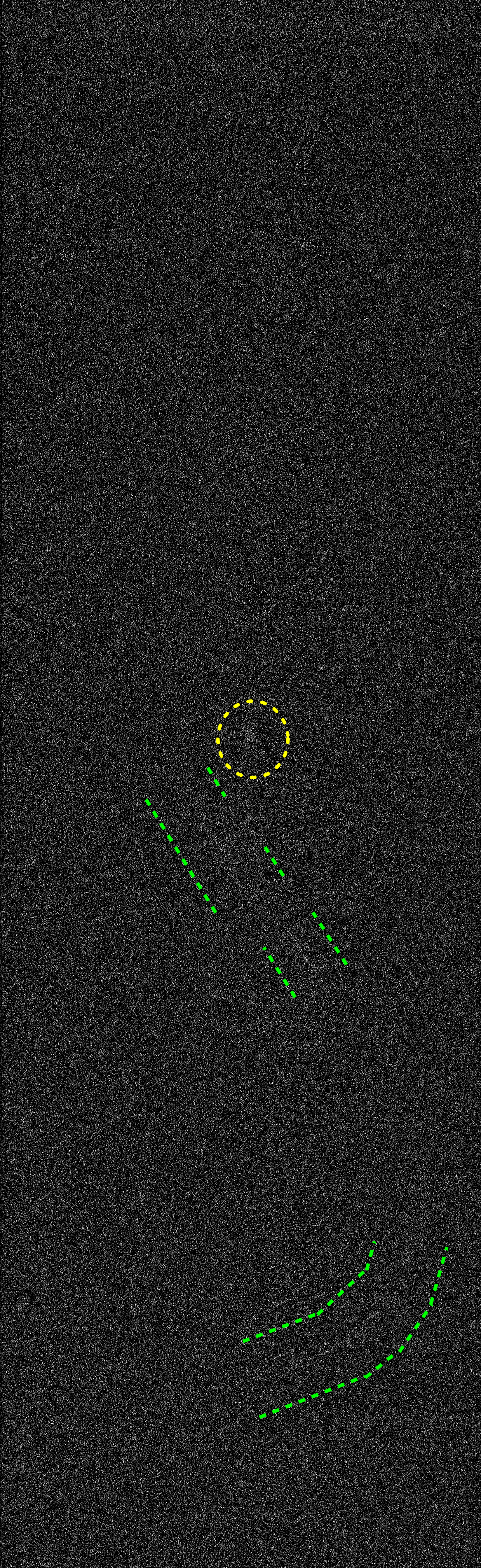 Very tentative and preliminary interpretation: Green annotation: candidates for arcs of auroral oval. Yellow annotation: candidate for Io aurora footprint.