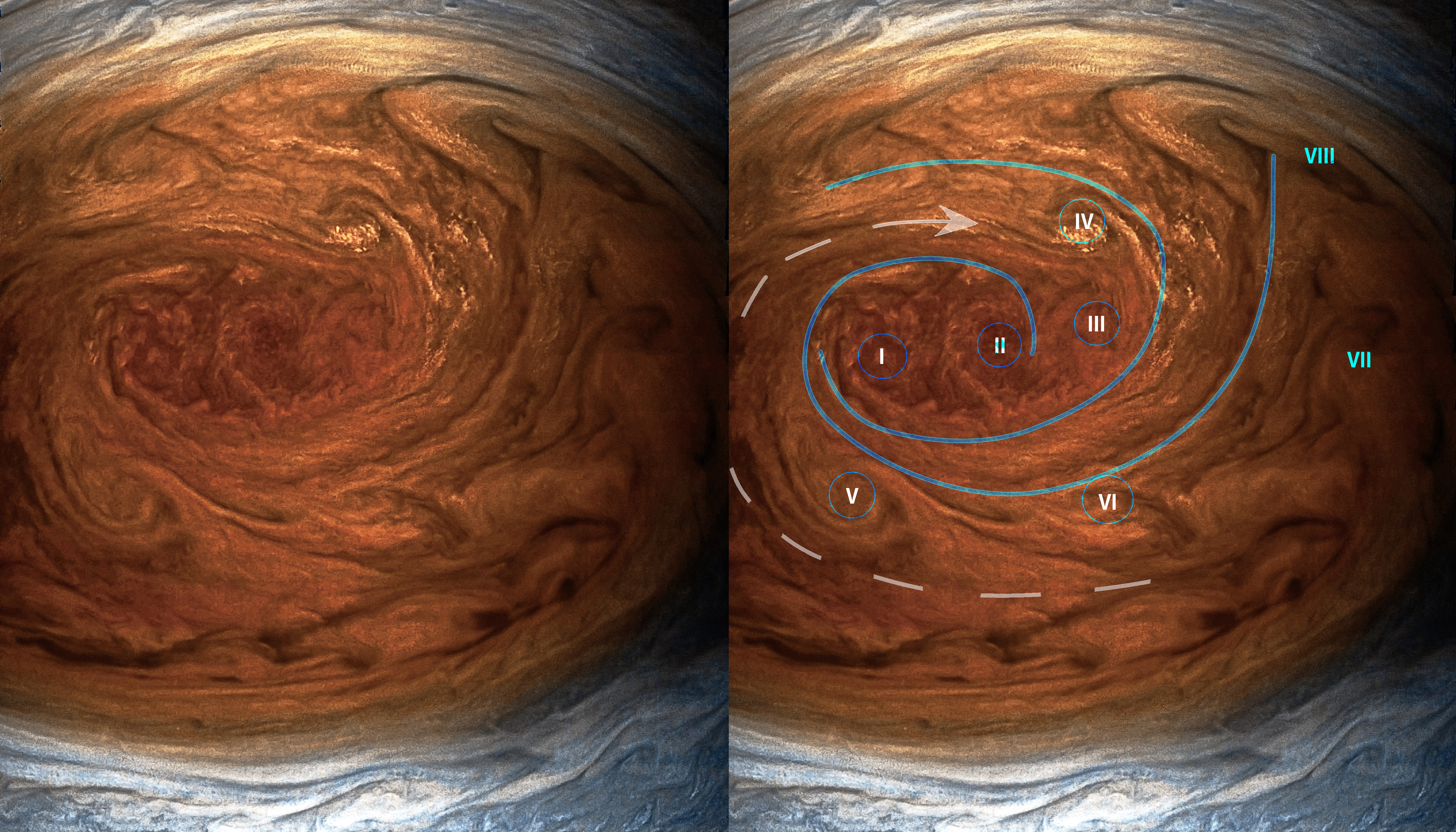 The JunoCam images are identified by a small spacecraft icon. You will see both raw and processed versions of the images as they become available. The JunoCam movie posts have too many images to post individually, so we are making them available for download in batches as zip files.