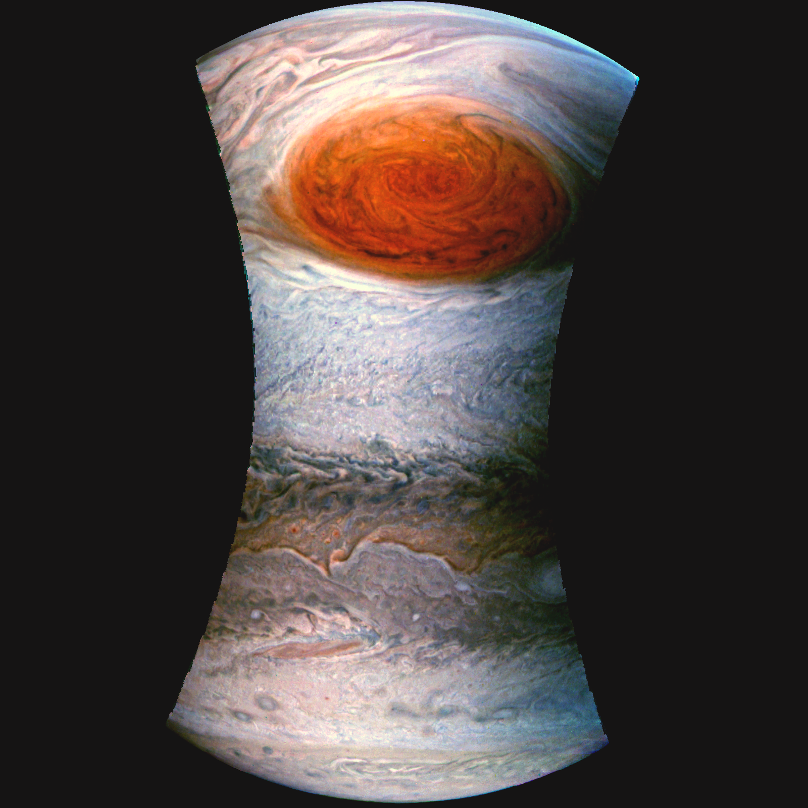 Jupiter's Great Red Spot picture processed, just a few tweaks done on contrast, brightness, saturation levels and color curves.