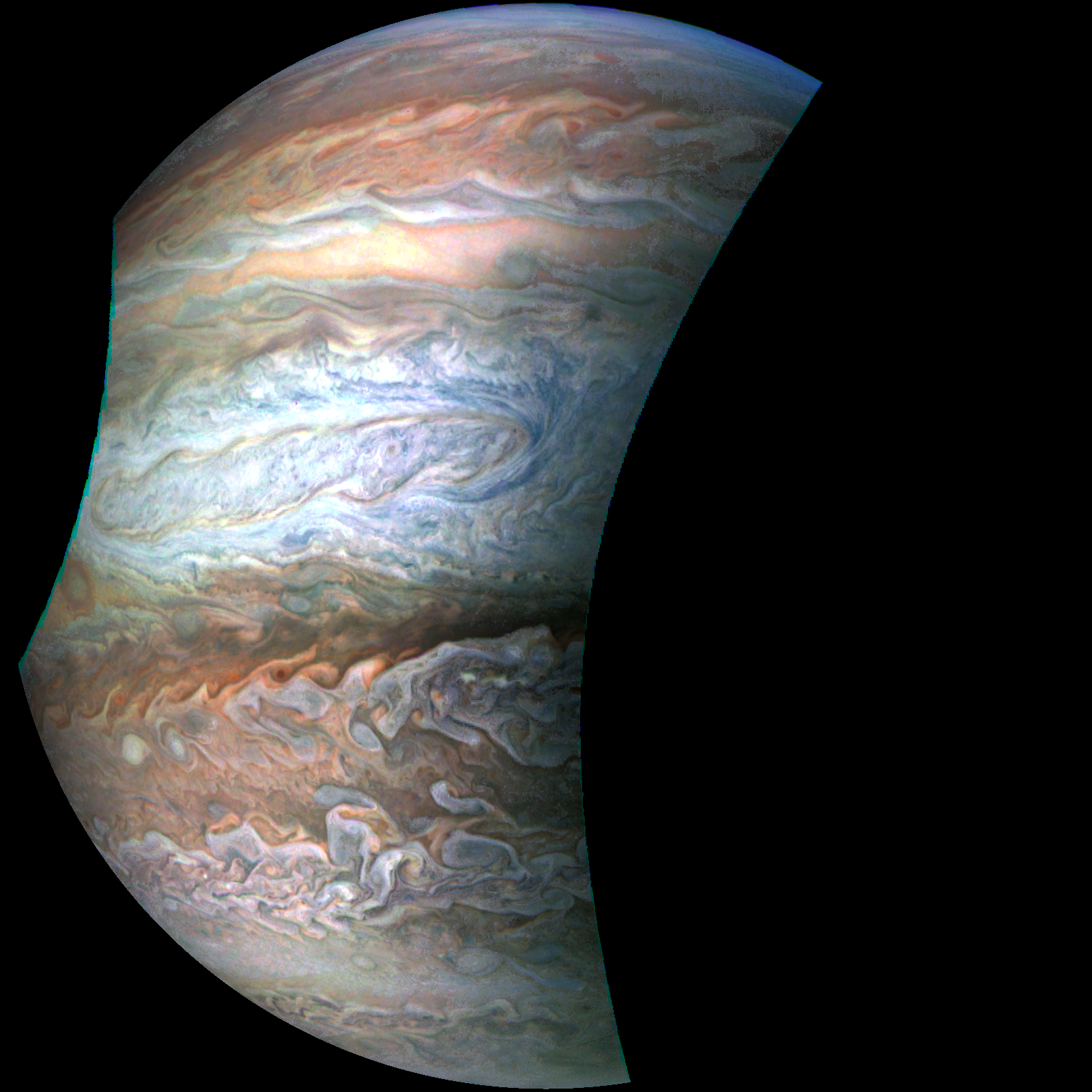 As per Junocam but colour enhanced
