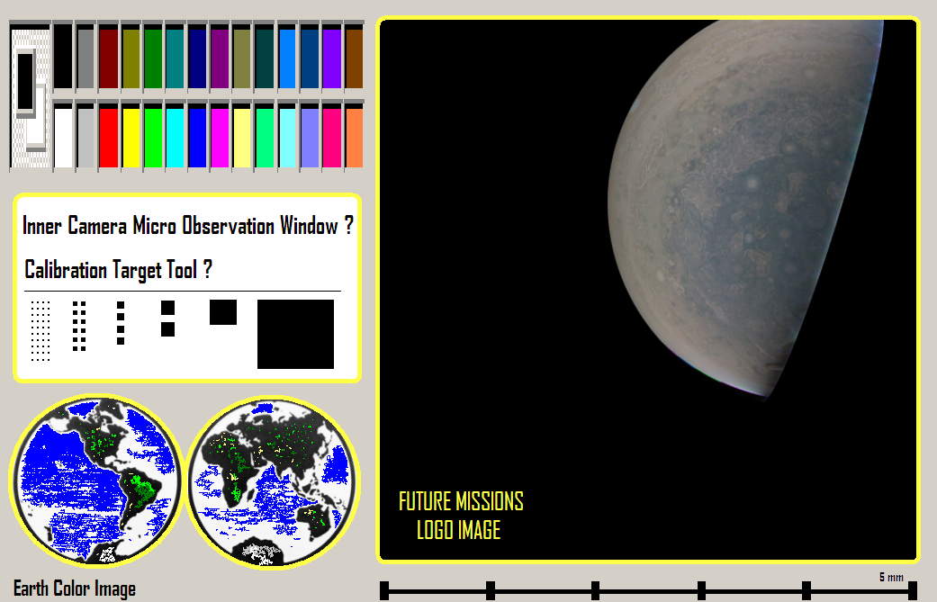 2. An Inner Camera Micro Observation Window and a Calibration Target Tool next to it when the mission is lasting for 5-10-30 and more years. The tool could be similar to the MSL MAHLI, JUNO Mission LEGO Minifigures experiments; or the ISS HDD Viewing experiment. In this way it will be cool; realistic and really interesting to share; watch and participate in those future epic space journeys.