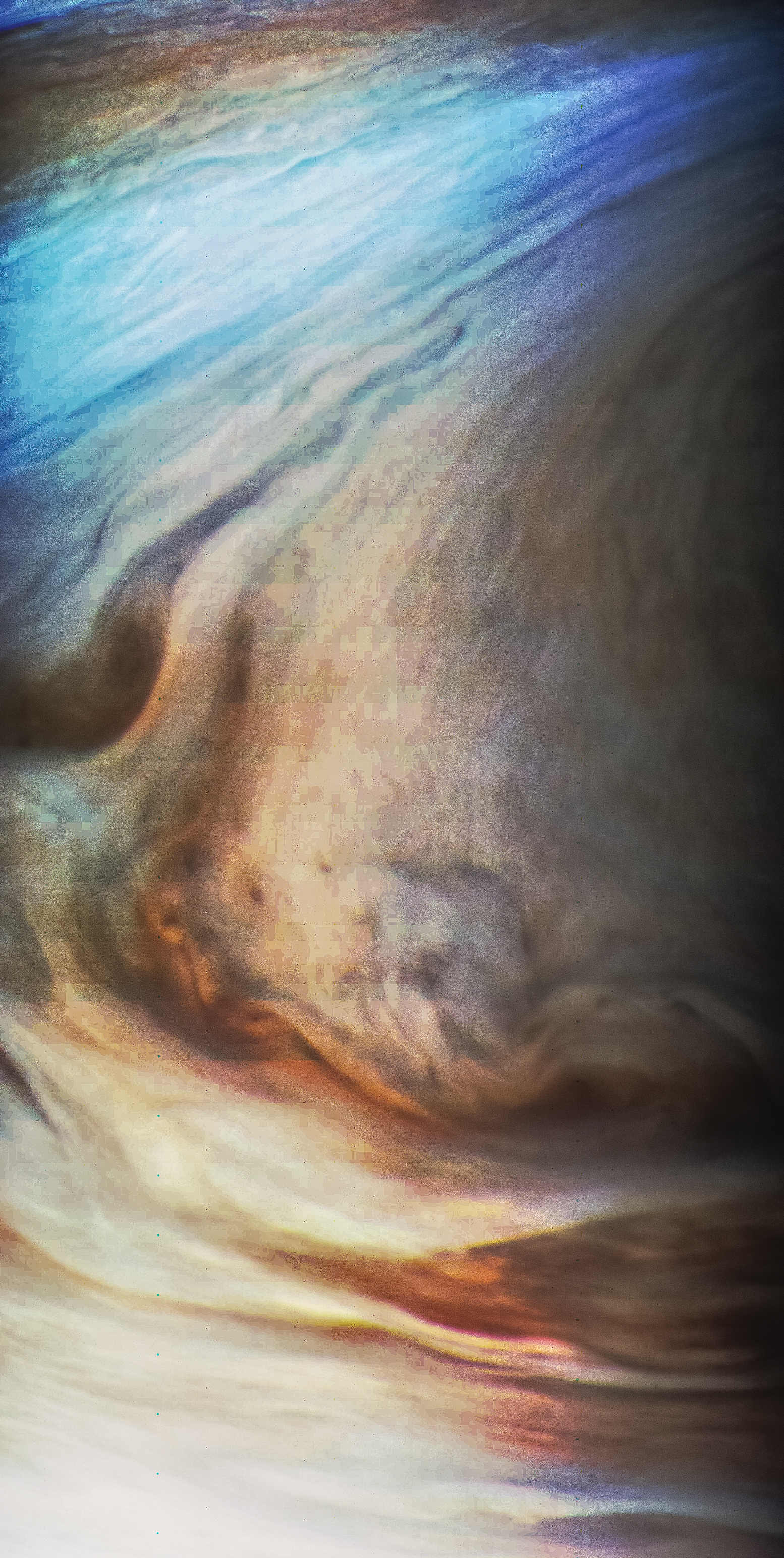 Junocam pixels are 12 bits deep from the camera but are converted to 8 bits inside the instrument using a lossless "companding" table, a process similar to gamma correction, to reduce their size. All Junocam products on the missionjuno website are in this 8-bit form as received on Earth. Scientific users interested in radiometric analysis should use the "RDR" data products archived with the Planetary Data System, which have been converted back to a linear 12-bit scale.