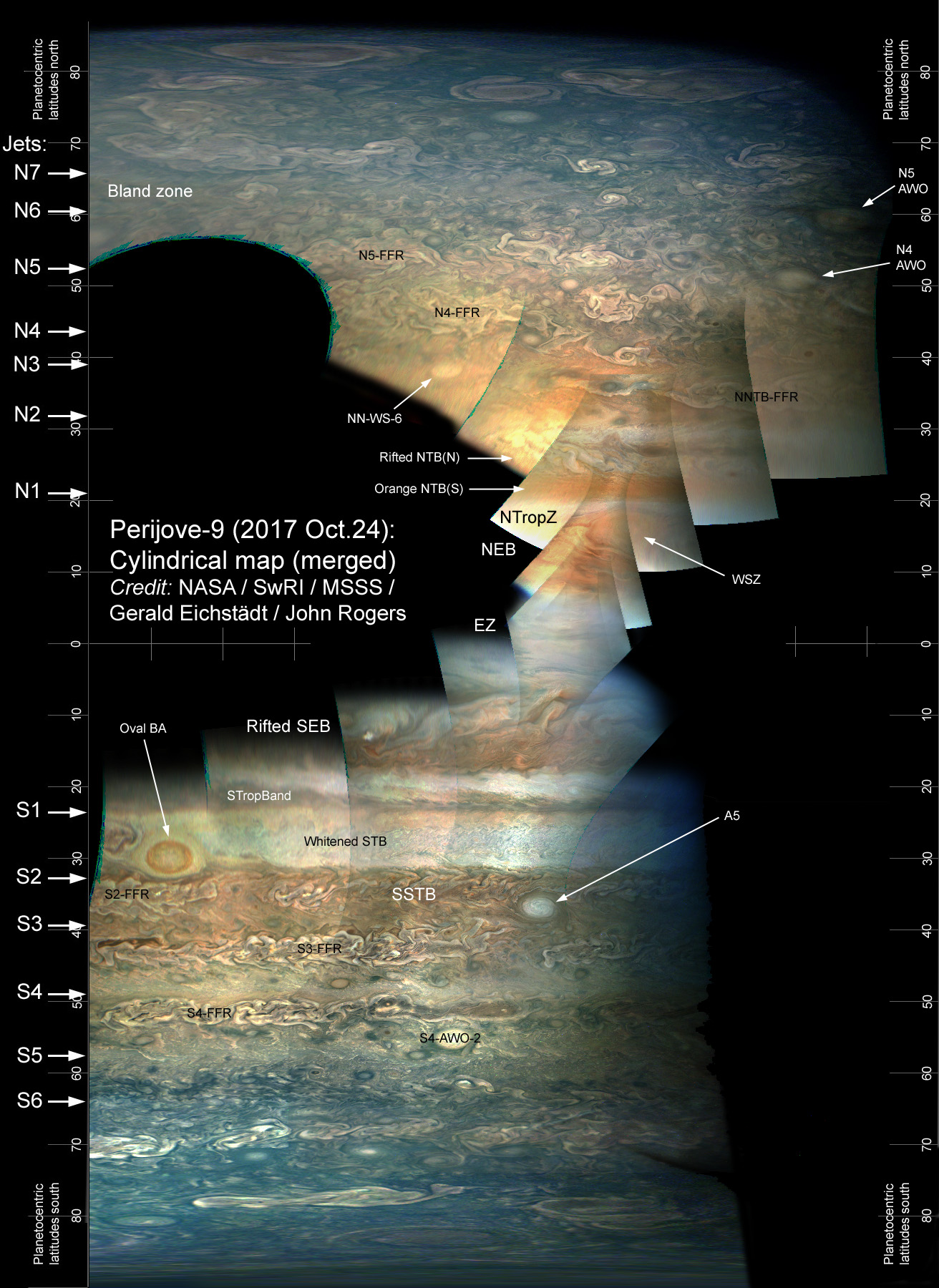 Map projections of the close-up images (by Gerald Eichstädt ) are combined to give a pole-to-pole map of the track. This is from a report on the PJ9 images, posted on the BAA Jupiter Section web site at: https://britastro.org/node/11780