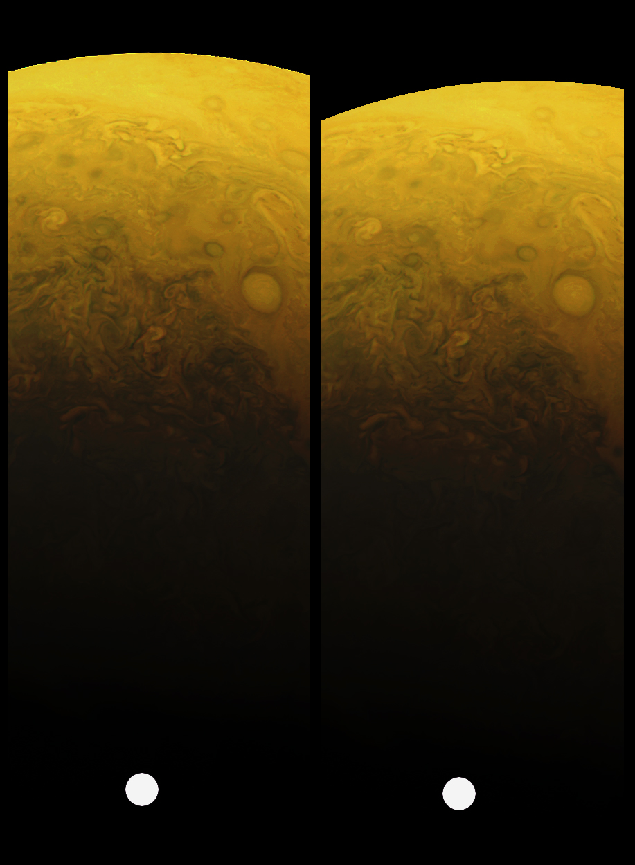 The JunoCam images are identified by a small spacecraft icon. You will see both raw and processed versions of the images as they become available. The JunoCam movie posts have too many images to post individually, so we are making them available for download in batches as zip files.