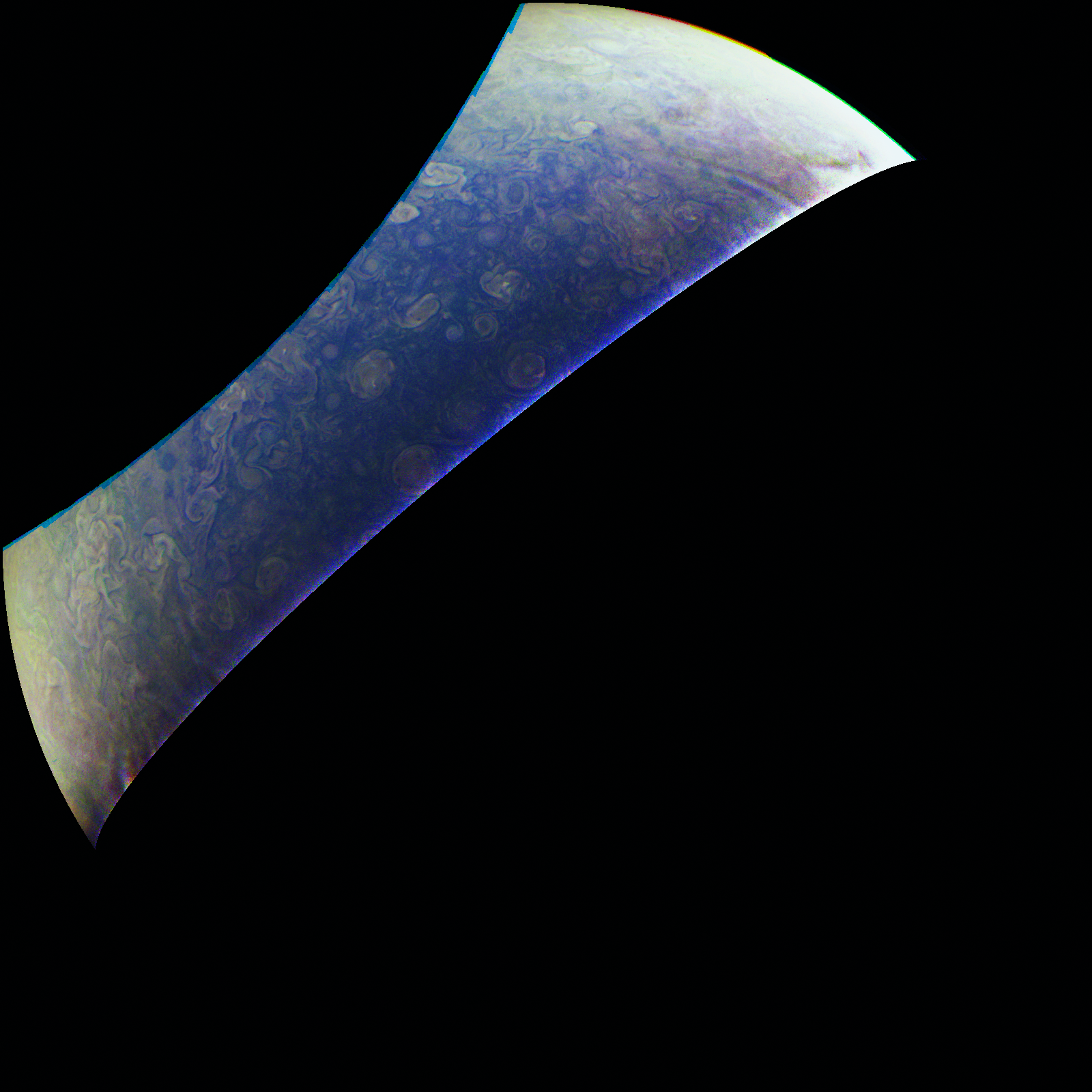 Jupiter has the blues, just like the rest of us .Planet's Clouds Swirl Like a Painting.You can get lost in the swirls and spins of Jupiter's clouds and storms, and Juno caught an amazing view of them