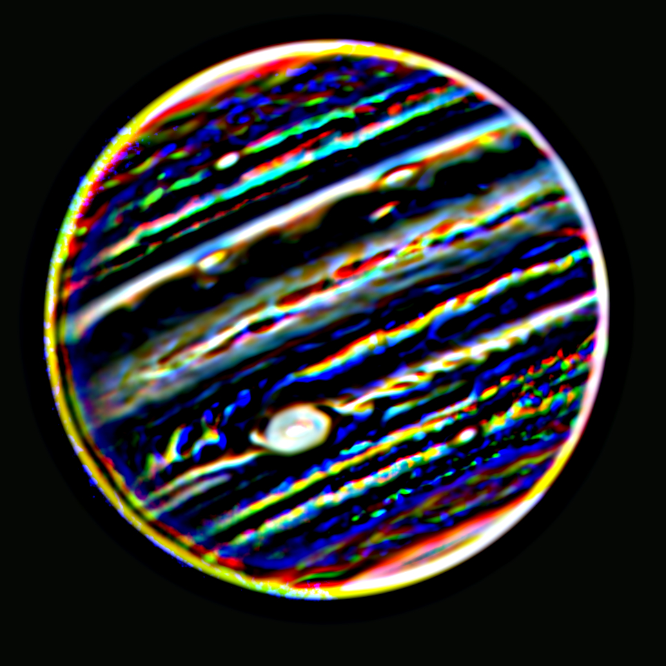 Credit : PIA21713: Jupiter With Great Red Spot, Near Infrared, May 2017 (enhanced by: M. Glassman)