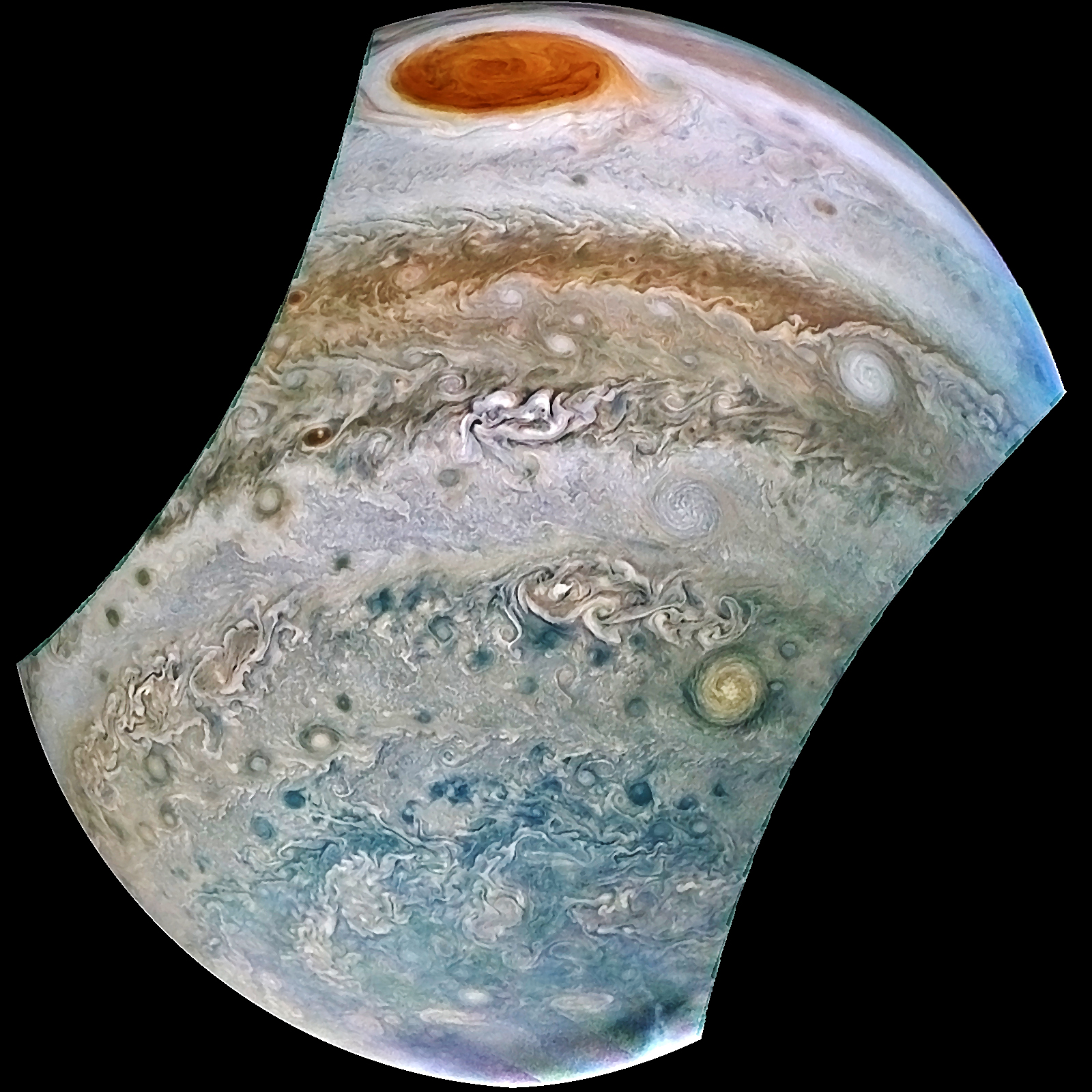 JUNO Great Red Spot , Oval A5 and South Pole