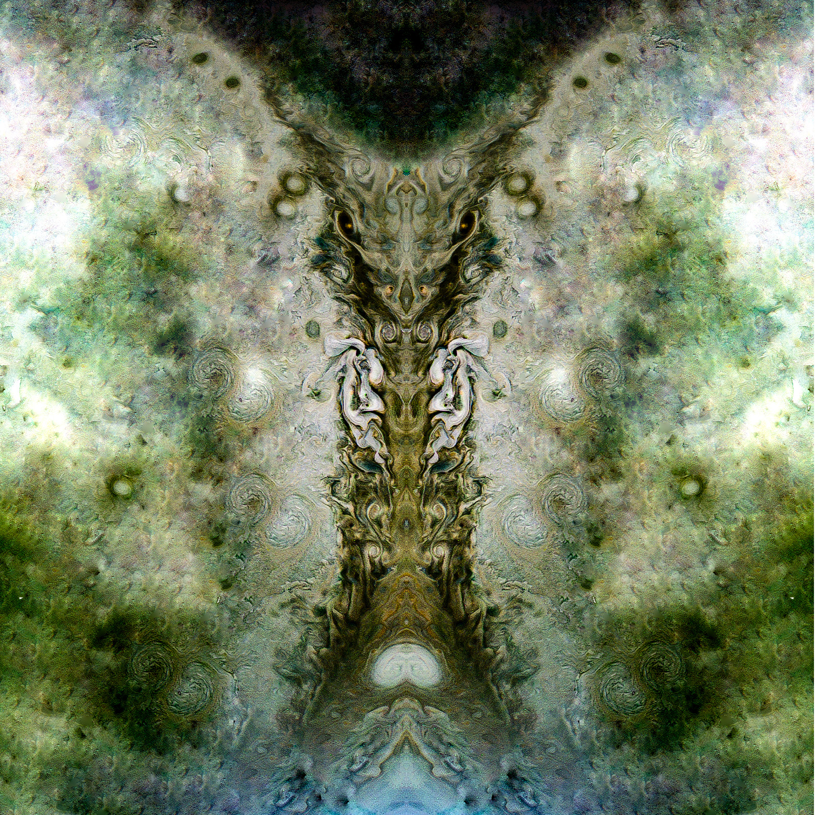 After processing this image to make the textures pop, I decided to cut a section out, paste together to create a symmetrical image, and fill in missing sections using healing brush. The result is something that is very reminiscent of H.R. Giger's design work.