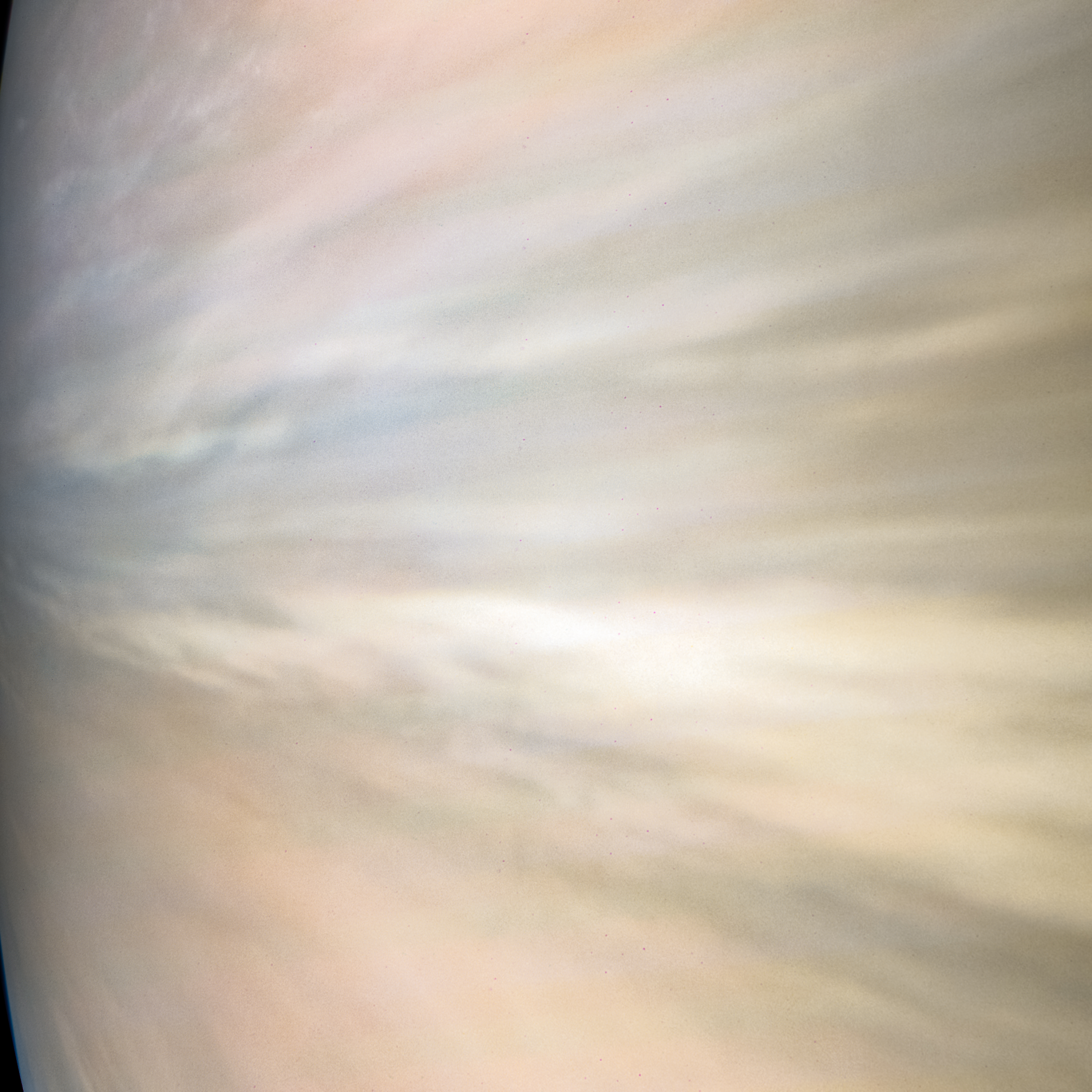 Junocam pixels are 12 bits deep from the camera but are converted to 8 bits inside the instrument using a lossless "companding" table, a process similar to gamma correction, to reduce their size. All Junocam products on the missionjuno website are in this 8-bit form as received on Earth. Scientific users interested in radiometric analysis should use the "RDR" data products archived with the Planetary Data System, which have been converted back to a linear 12-bit scale.