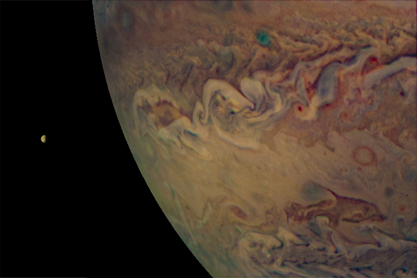 A special note about the Earth Flyby mission phase images: these were acquired in 2013 when Juno flew past Earth. Examples of processed images are shown; most contributions are from amateurs.