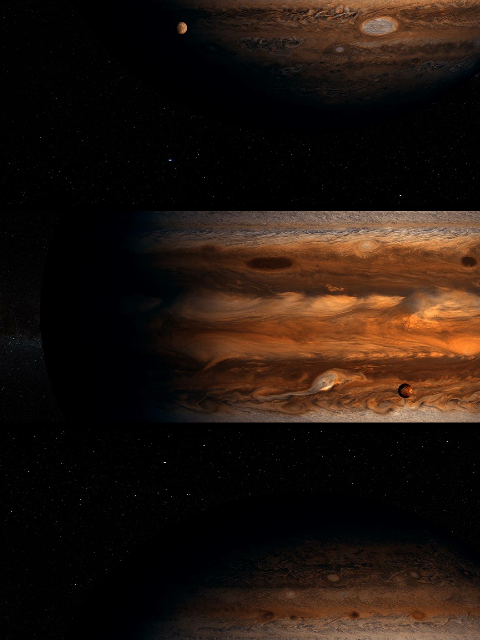 A special note about the Earth Flyby mission phase images: these were acquired in 2013 when Juno flew past Earth. Examples of processed images are shown; most contributions are from amateurs.