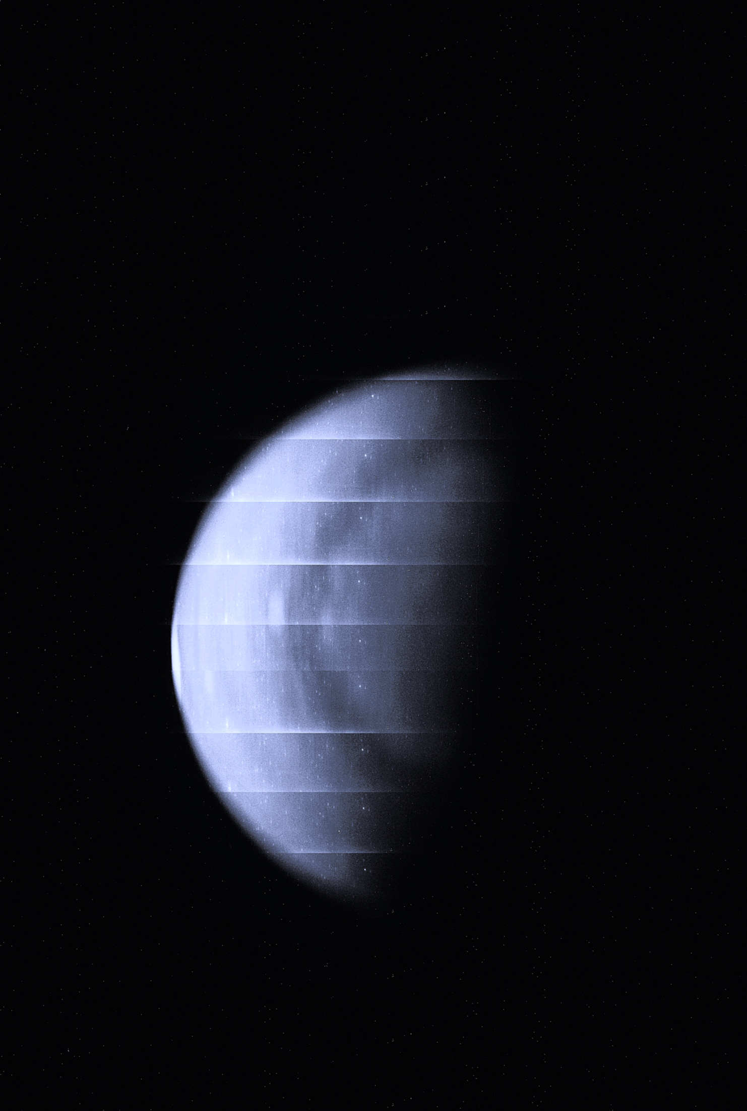 exposure) to try to detect Jupiter’s aurora. We imaged at two different geometries, looking directly down at the pole