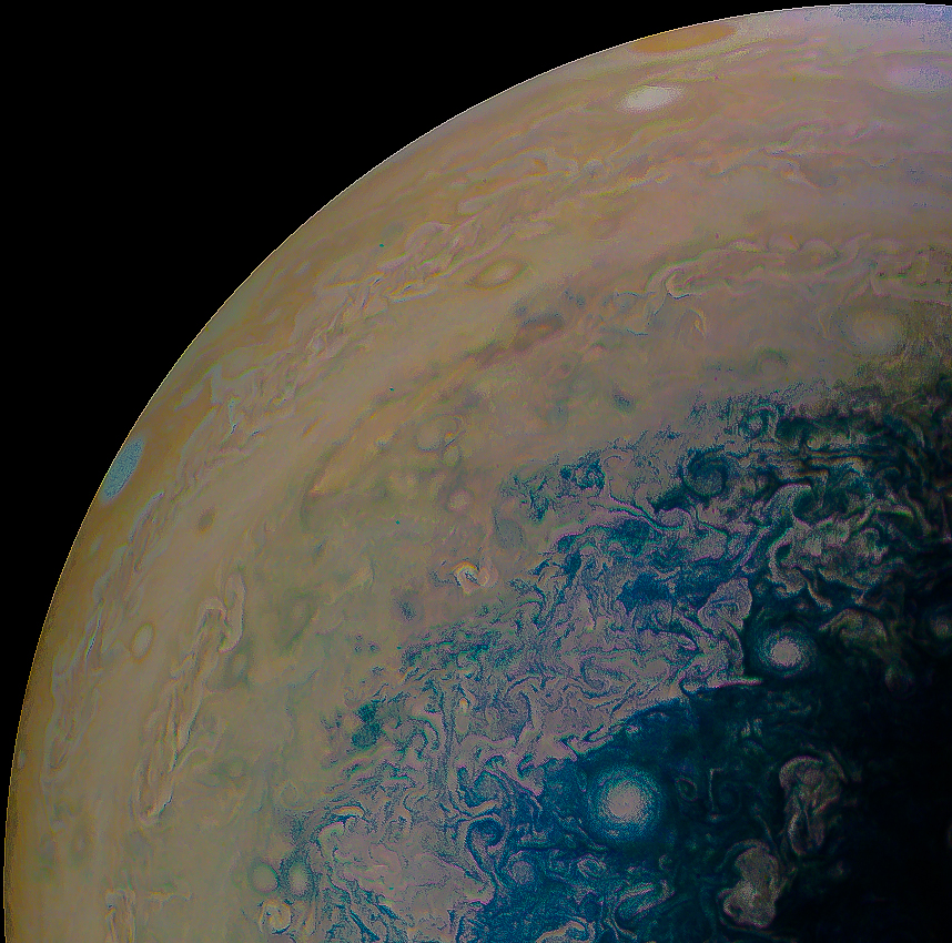 We invite you to download raw JunoCam images posted here and do your own image processing on them. Be creative! Anything from cropping to color enhancing to collaging is fair game. Then upload your creations here.