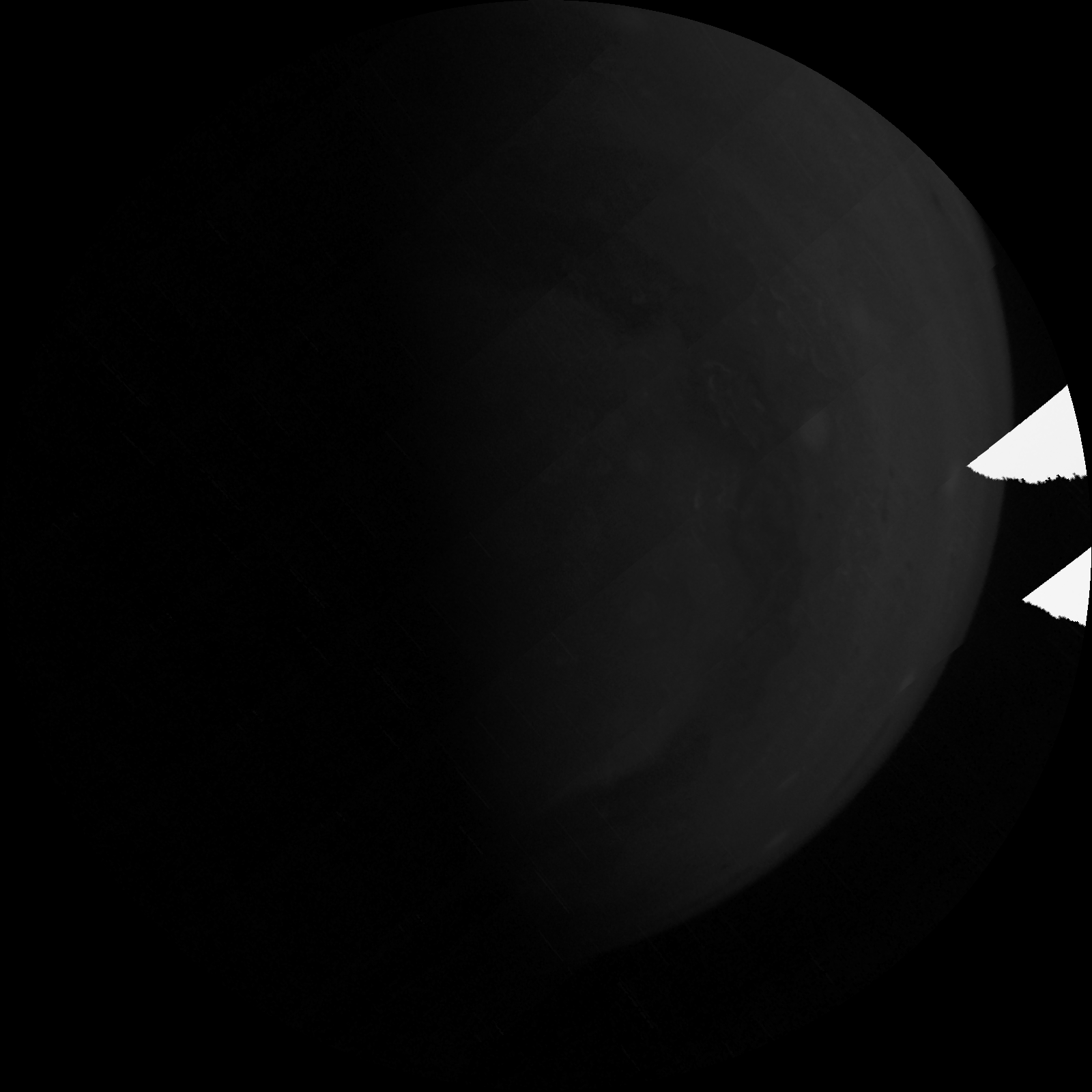 We have a methane filter, included for the polar science investigation, that is almost at the limits of our detector’s wavelength range. To get enough photons for an image we need to use a very long exposure. In some images this results in scattered light in the image. For science purposes we will simply crop out the portions of the image that include this artifact. Work is in progress to determine exactly what conditions cause stray light problems so that this can be minimized for future imaging.