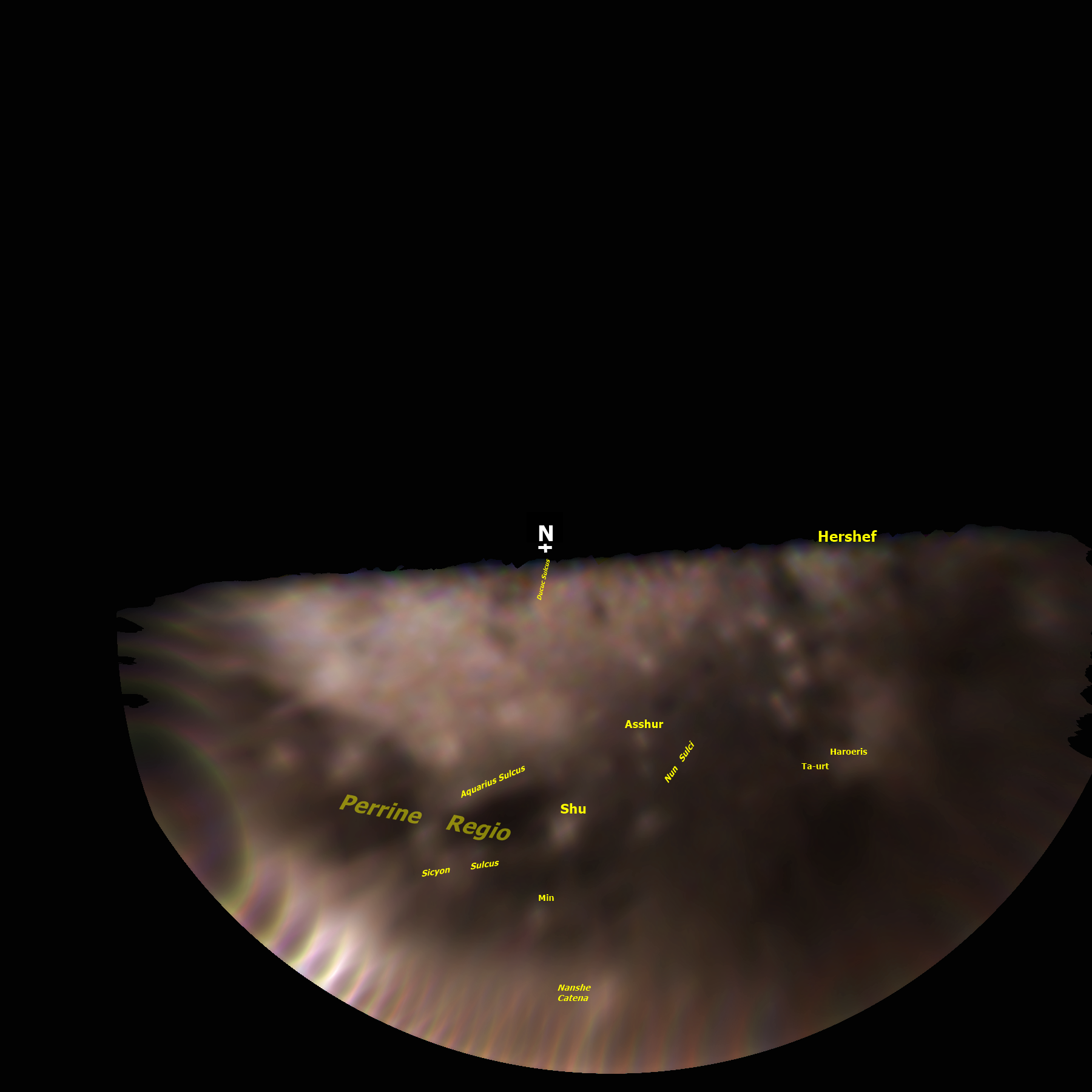 PJ24, Ganymede, North Polar Hemispherical, Tentatively Annotated, Revised