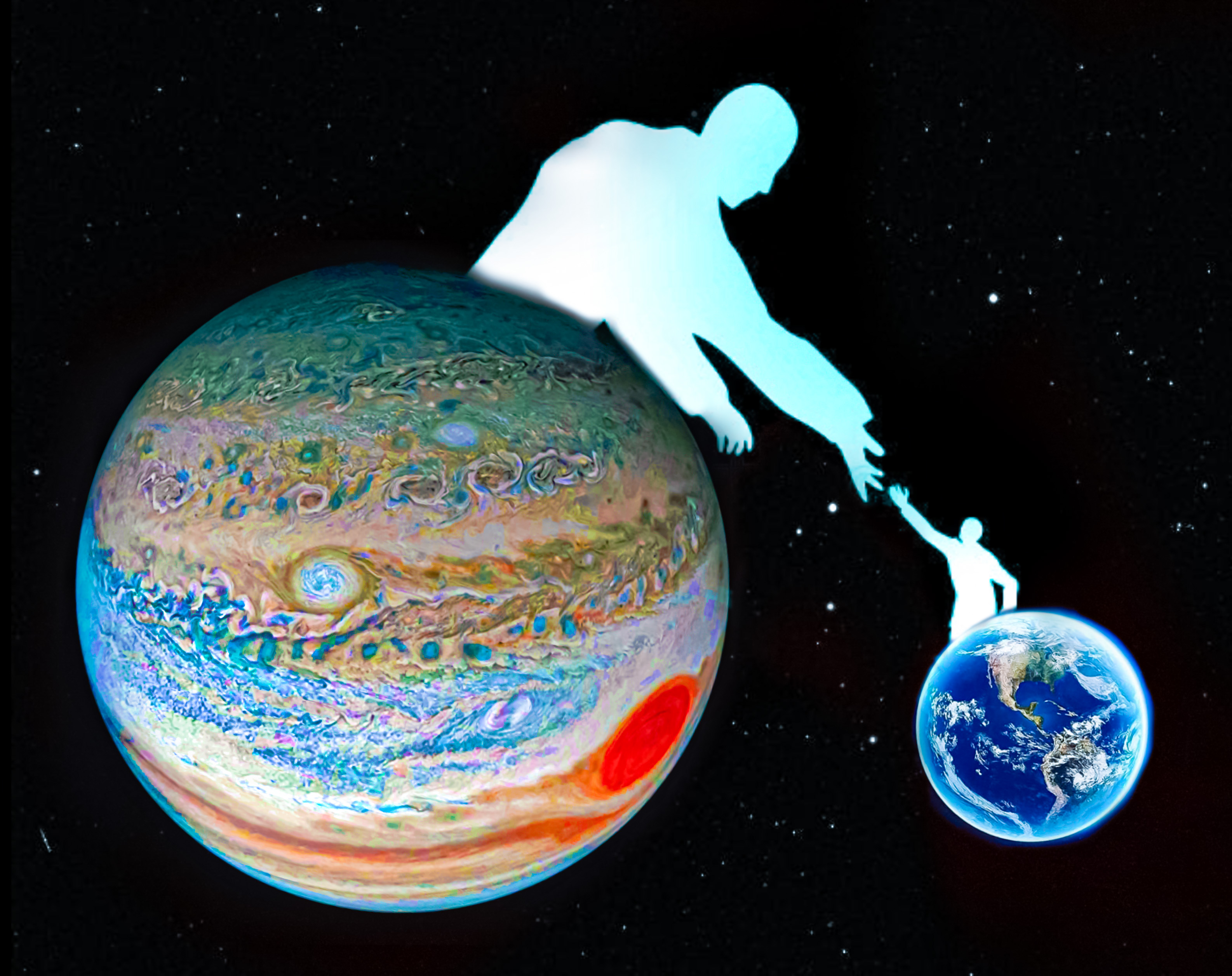 This image was processed from Juno cam raw files using adobe photoshop, lightroom, and snapseed . Jupiter always protect our Earth from upcoming asteroids and comets by attracting them toward him. I want to convey this message from this pic