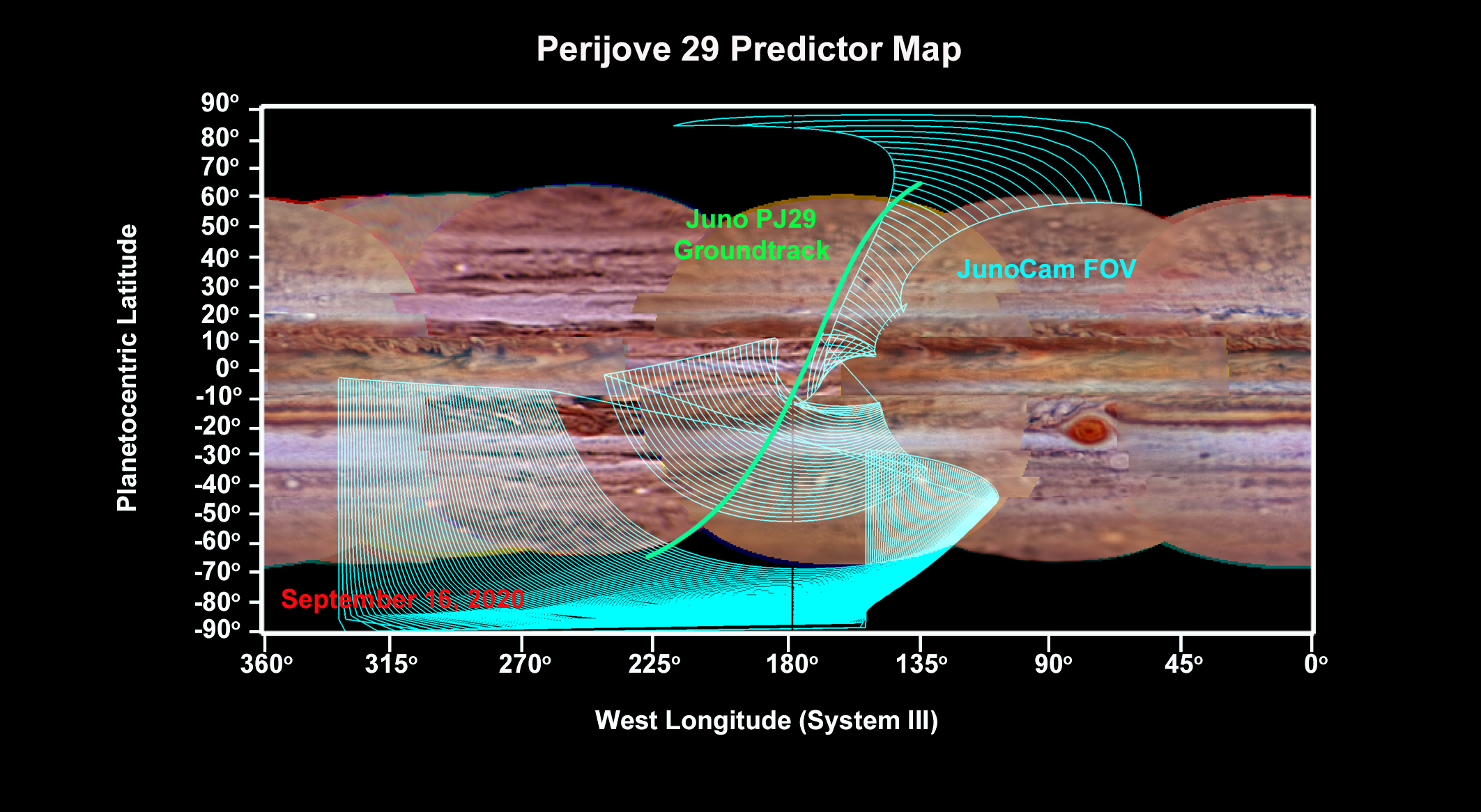d Back to all Threads Final PJ29 Predictor Map By Tom on 2020-09-10 UT PJ29 Predictor Map with JunoCam FOV Downloads 1-PJ29PredictorMapJunoCamFOV.jpg [1.17 MB] 2 Comments comment by Philosophia-47 on 2020-10-22 11:57 UTHere are the full-size figures to go with our report on PJ29. 1 DownloadsPJ29_JHR-report_Figures.zip [6.96 MB]BACK TO TOP comment by Philosophia-47 on 2020-10-22 11:56 UTHere is our report on the PJ29 images. --John Rogers.1 DownloadsPJ29_JHR-report.pdf [920.09 kB]BACK TO TOP