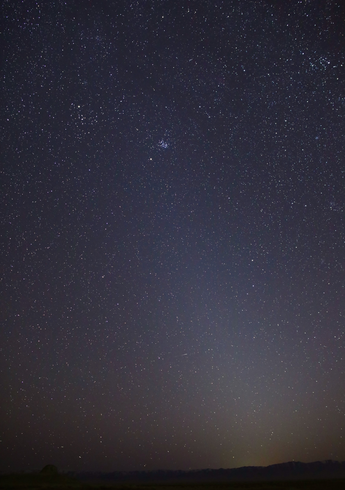This photo shows the zodiacal light as it appeared on March 1, 2021, in Skull Valley, Utah. The Pleiades star cluster is visible near the top of the light column. Mars is just below that. Credits: NASA/Bill Dunford