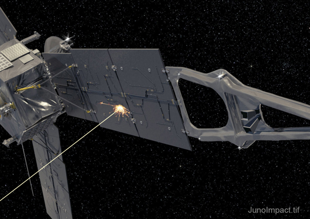 Juno’s Magnetometer Investigation’s star cameras tracked tiny bits of the spacecraft excavated by interplanetary dust impacting at high speed (~10km/s).